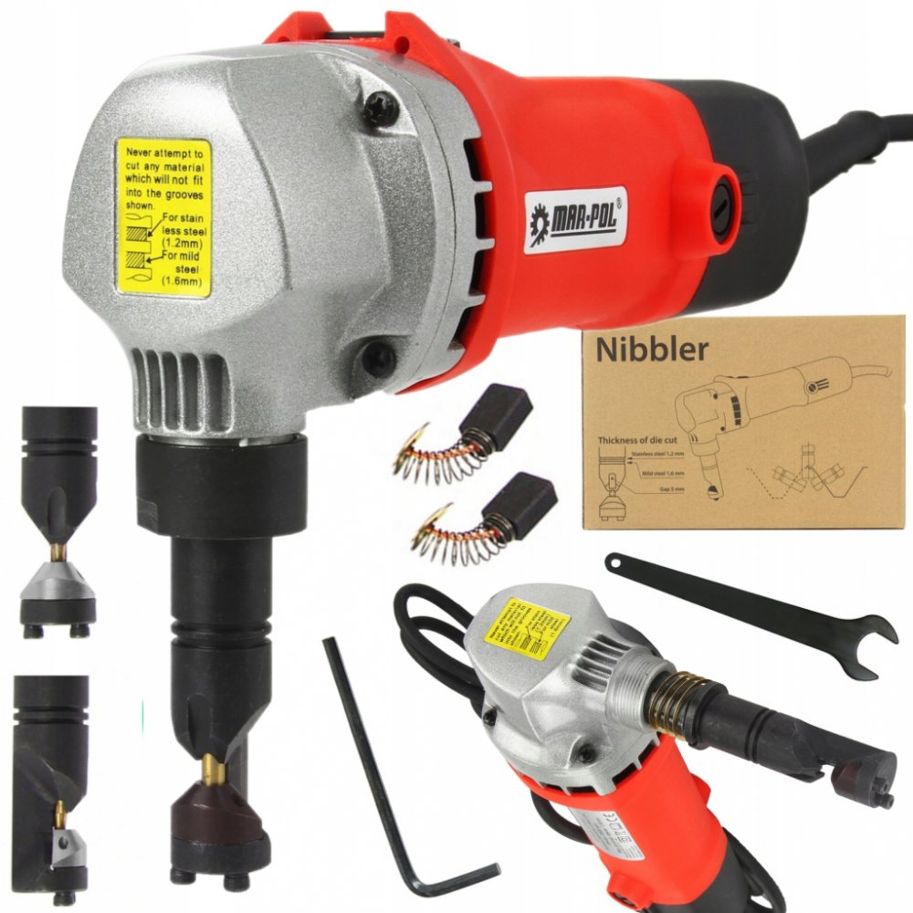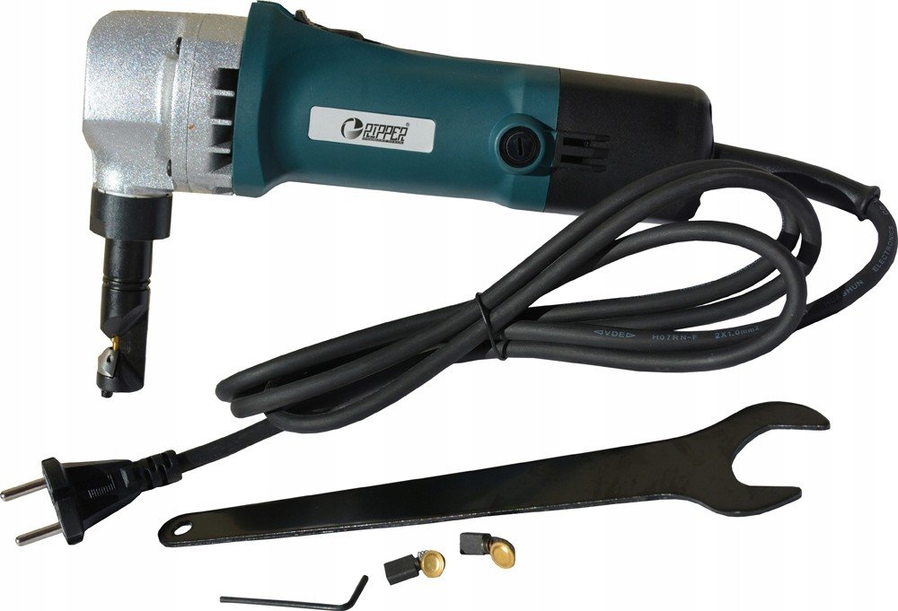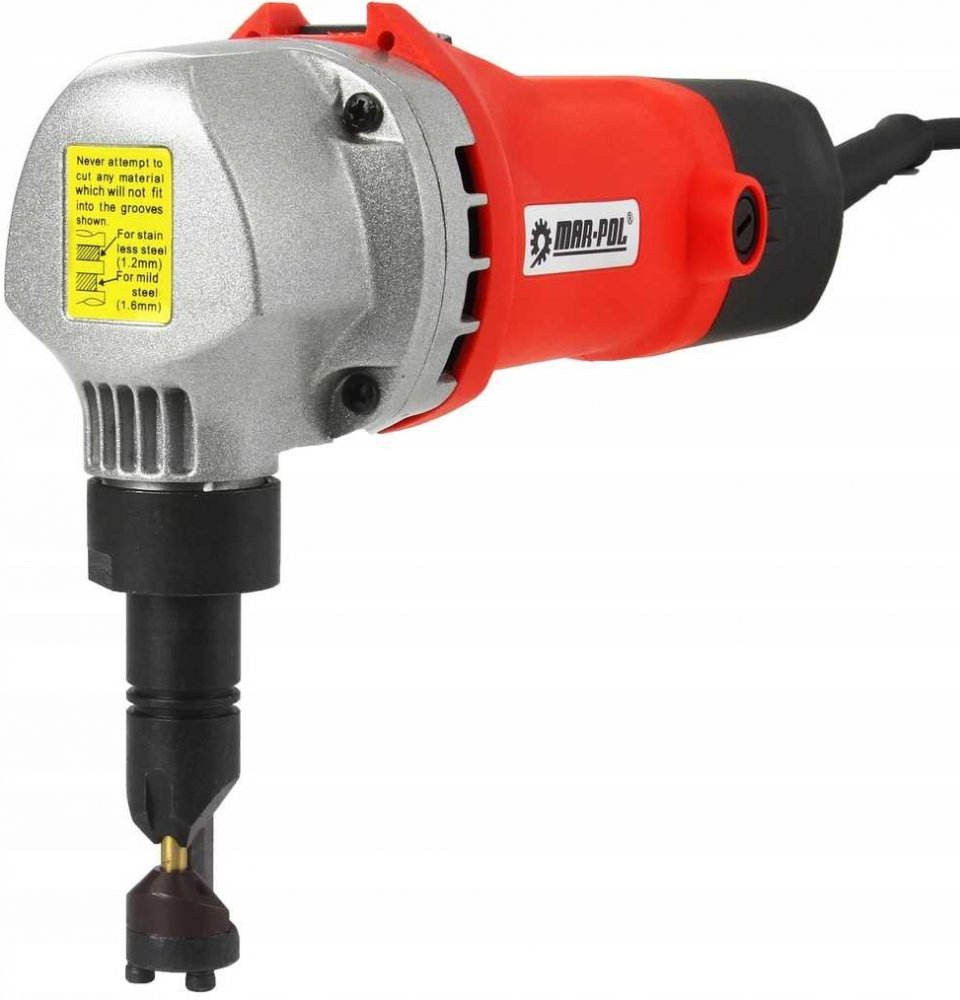 Elektrické nůžky na plech jsou zařízením nezbytným pro práce související se stavbou, kutilstvím a v autoservisech. Nůžky se používají pro práce související s přímými, trapézovými, vlnitými a kovovými střešními krytinami. Tak široká škála možností při výběru řezaného materiálu se promítá do velkého množství práce, kterou lze provést s tímto zařízením. Nůžky snadno stříhají plechy v přímé linii, stejně jako v zakřivené čáře, oblouku podle určené šablony. Zařízení je poháněno 500 W elektromotorem, díky kterému je práce se zařízením plynulá a přesná. Vzhledem ke svému vysokému výkonu si zařízení poradí se silným materiálem.