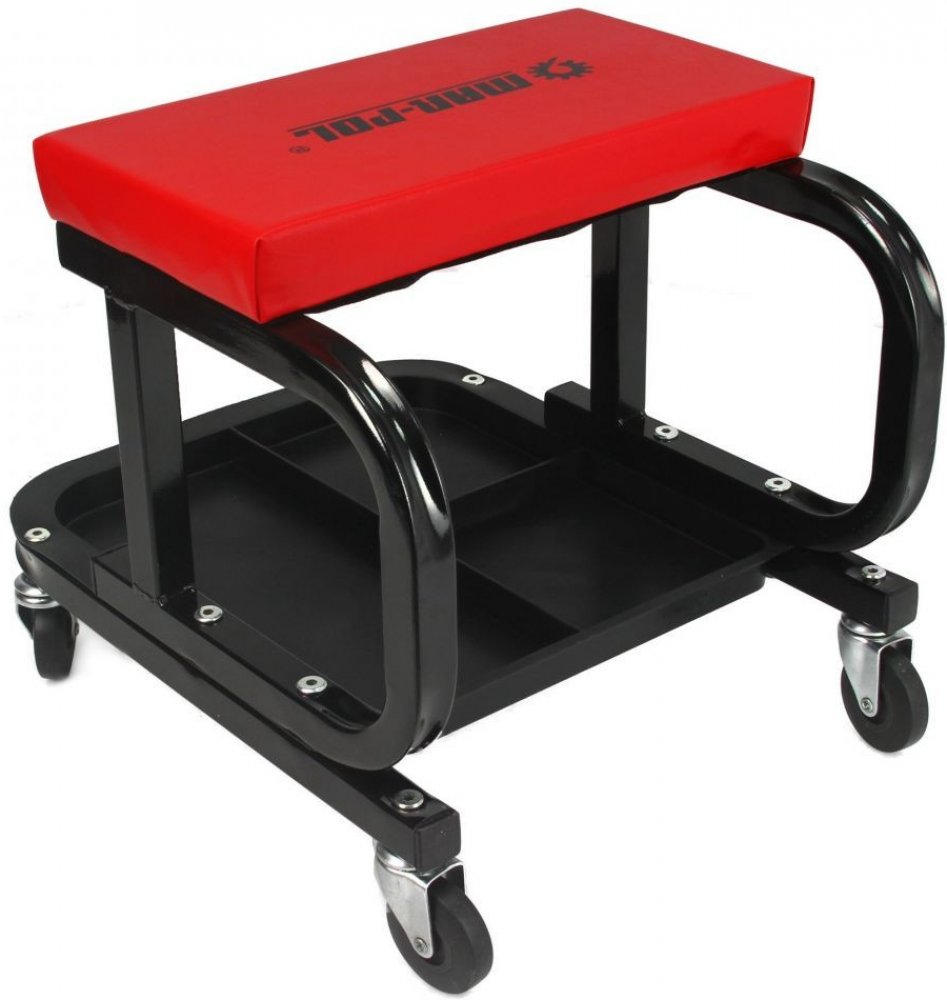 Montážní pojízdné sedátko MAR-POL Montážní pojízdná stolička se zesílenou ocelovou konstrukcí, se čtyřmi přepravními kolečky je vybaveno úložným prostorem na nářadí ve spodní části. Mimořádně užitečná a praktická do dílny. Pohodlný a široký sedákmobilní - díky 4 kolům otočných 360° Přednosti: