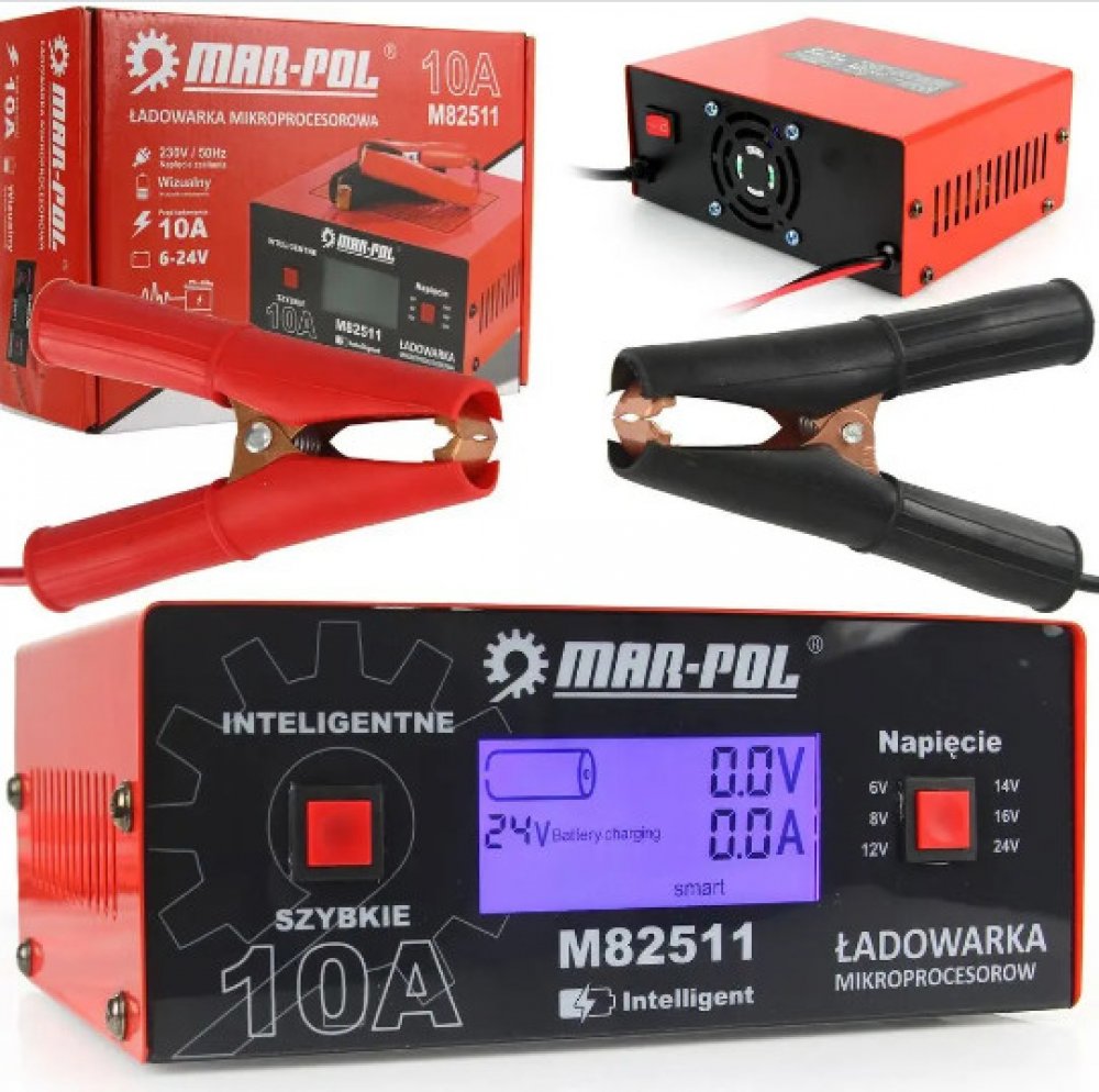 Mikroprocesorový usměrňovač MAR-POL M82511 je nabíječka s mikroprocesorovým řídicím a řídicím systémem v technologii PWM (Pulse-Width Modulation) s možností nabíjení 6V, 8V, 12V, 14V, 16V a 24V baterií a možností volby ne standardní typy napětí baterií, které inteligentně a cíleně volí vhodné parametry, čímž se vybitá a zanedbaná baterie regeneruje.