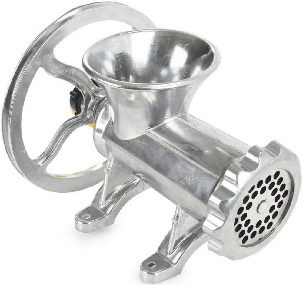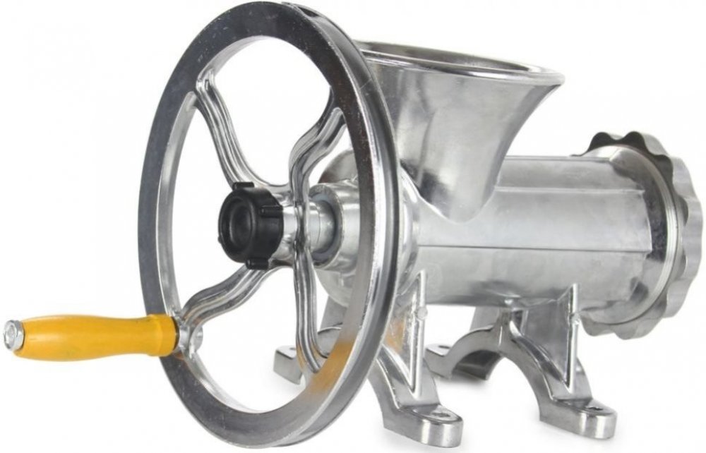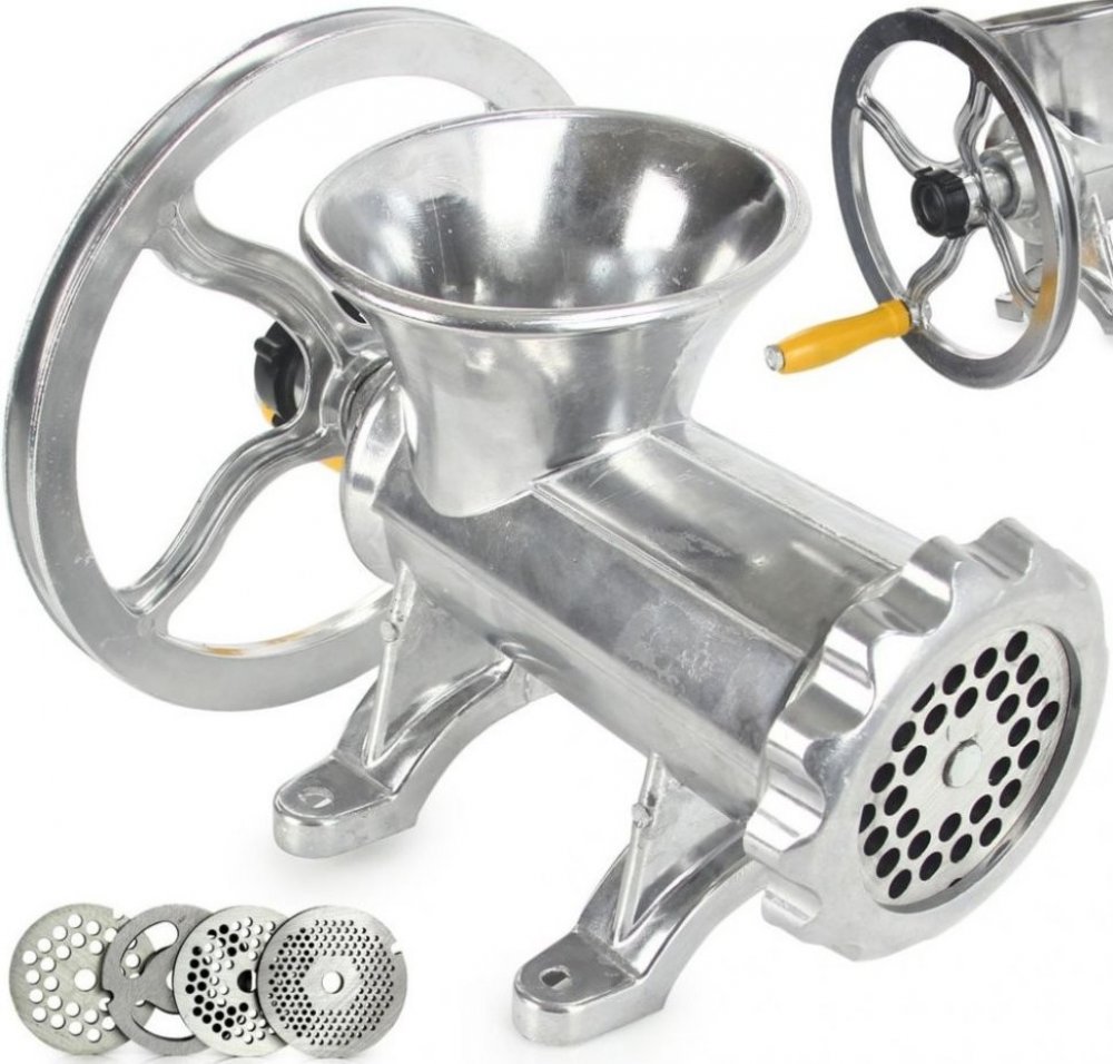 Mlýnek na maso s klikou, řemenicí a dlouhou životností, vyrobený ze slitiny hliníku. Nepostradatelný pomocník v kuchyni a hlavně na každé pořadné zabíjačce. Lze jej napojit na elektromotor a tím z něho udělat profesionální stroj na mletí masa a výrobu klobás.