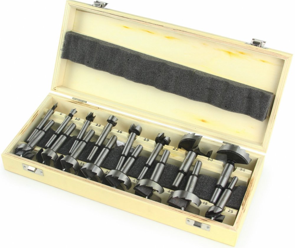 Sukovníky, frézy do dřeva 16 ks16-dílná souprava sukovníků na dřevo 6 - 54 mm. Sukovníky se používají na řezání plných děr v dřevu a dřevěných materiálech.Technické údaje:Rozměry: 6, 10, 13, 16, 19, 22, 25, 28, 32, 35, 38, 41, 44, 48, 50, 54 mmUpínání: 8mm a 10mm vřetenoCelková délka: približně 84 mmVyrobené z uhlíkové oceli