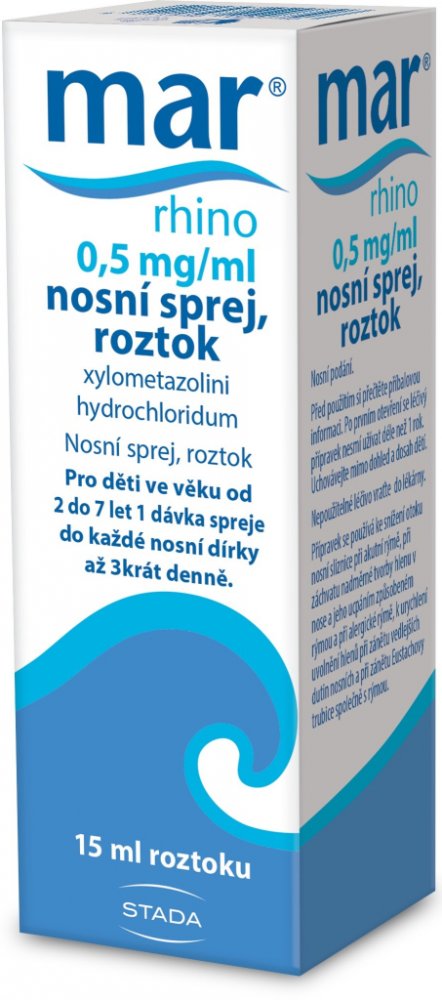 Přípravek mar rhino 0,05%, nosní sprej se používá ke snížení otoku nosní sliznice při akutní rýmě, při záchvatu nadměrné tvorby hlenu způsobeného rýmou a při alergické rýmě, k urychlení uvolnění hlenů při zánětu vedlejších dutin nosních a při zánětu Eustachovy trubice společně s rýmou.