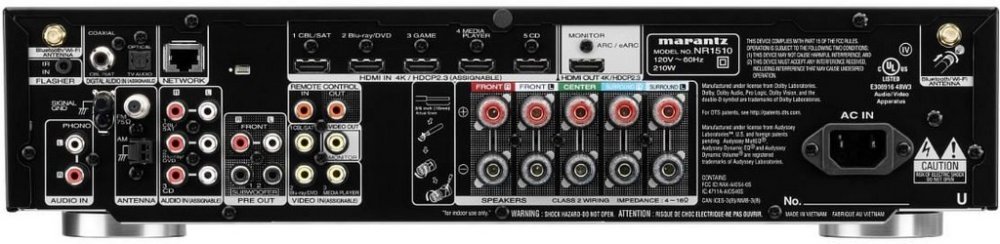 Zažijte výjimečný zvukový přednes z útlého profilu AV receiveru Marantz NR1510 4K Ultra HD, 5.2 kanálů, který dodává elegantní prostorový zvuk a vysoce věrohodný stereofonní zvuk z kompaktního šasi. Model NR1510 o výšce poloviny tradičního AV receiveru je vybaven nejnovějšími funkcemi HDMI konektivity a poskytuje prostorový zvuk s vysokým rozlišením s formátů Dolby TrueHD a DTS-HD Master Audio. Streamujte hudbu z populárních online zdrojů a ovládejte receiver NR1510 hlasem pomocí kompatibilních aplikací Amazon Alexa, Asistent Google nebo Apple Siri. Šest HDMI vstupů - včetně vstupu na předním panelu - podporuje nejnovější video a snímkové formáty a přenos zdokonaleného zvukového signálu pomocí kanálu eARC.