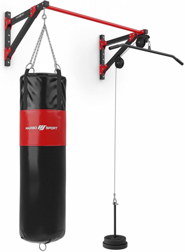 MARBO Sport MH-D204 je variabilní produkt, který v sobě kombinuje hrazdu, vrchní kladku a držák boxovacího pytle.