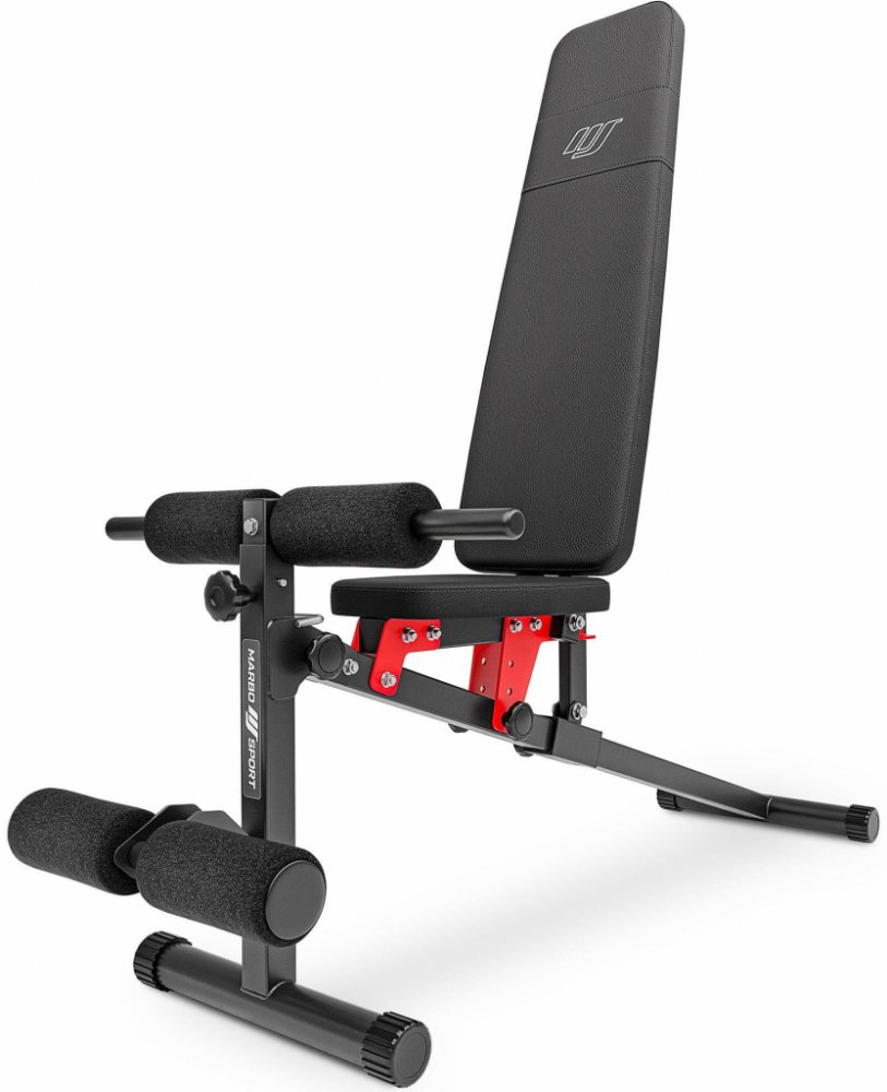 Variabilní, posilovací lavice MARBO MH-L111 2.0 je inovovaným modelem oblíbené lavice MH-L111. Vyslyšeli jsme připomínky našich zákazníku a inovovaný model má lépe tvarovanou opěrku pro lepší ergonomii a vyšší komfort během tréninku. Po funkční stránce jsme vylepšili systém polohování. Opěradlo lavice jde nastavit do sedmi poloh v rozsahu od -19° do +78°, sedátko do tří poloh a horní část adaptéru s madly je výškově nastavitelná do pěti poloh v rozsahu 55 - 75 cm od země, pak už záleží pouze na Vás, zda budete trénovat svaly břicha, zad, ramen, nohou nebo paží. Konstrukce lavice MARBO MH-L111 2.0 je vyrobena z ocelového profilu 40 x 40 mm, díky kterému má nosnost až 200 kilogramů. Jednotlivé díly jsou vyrobeny na precizních, programovatelných CNC strojích, tento výrobní proces je zárukou bezproblémové montáže a zároveň garantuje plnou stabilitu kompletní lavice. Praktickou stránkou lavice MARBO MH-L111 2.0 je regulace zádové opěry, která se provádí pomocí šroubů s plastovým, ergonomickým úchytem. Polstrování jsme opatřili dvojitými švy pro maximální pevnost. V nejnamáhanějším místě jsme opěrku přetáhli druhou vrstvou kůže s logem MARBO Sport.