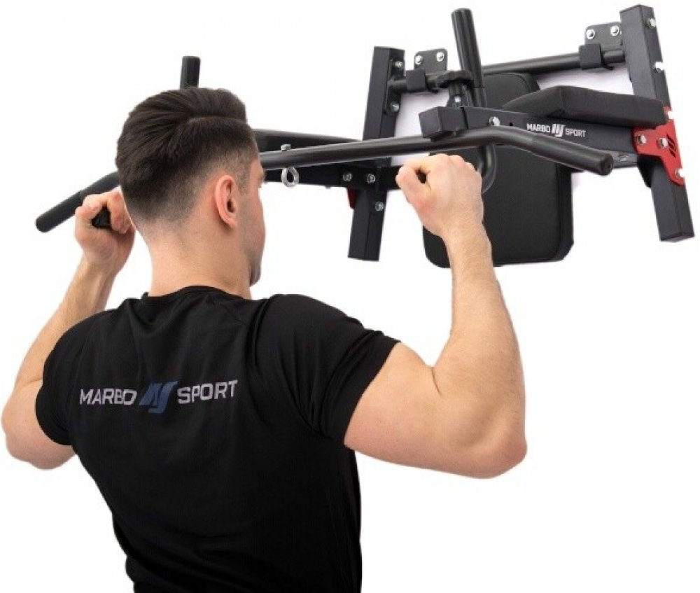 Bradla s hrazdou MARBO Sport MH-U205 jsou určeny pro zavěšení na zeď, nebo na žebřiny. Variabilita MH-U205 je postavena na 3 párech háků, které naleznete v balení. První 2 páry jsou určeny pro montáž na zeď: 1. pár se použije pro montáž do ideální výšky pro hrazdu a 2. pár se upevní do výšky pro použití bradel. Pro bezpečné použití je nunté zvolit správné kotvení podle materiálu stěny. 3. pár se p...
