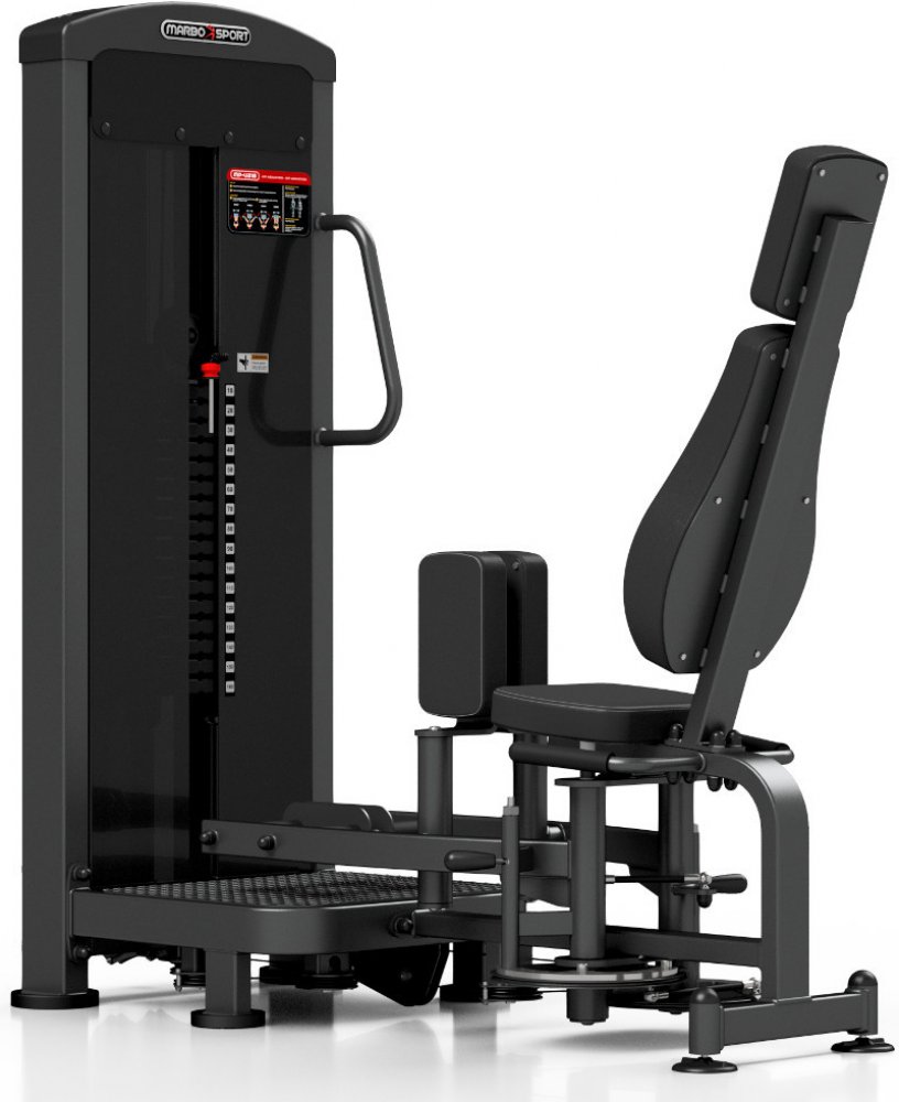 Roznožování a snožování MARBO MP-U218 je nekompromisní, profesionální vybavení pro Vaší posilovnu. Pro výrobu byly zvoleny ocelové profily 120x60x3mm a 80x40x3mm, které zaručují nečekanou trvanlivost. Zátěž tvoří 16ks 10kg cihel. Celková váha závaží dodávána se strojem je tedy 160kg. Stroj je řešen jako 2v1 a jednoduchým přepnutím páky a otočením opěrek změníte chod stroje z odtahování nohou od sebe na přitahování nohou k sobě. Polstrovaní je ze syntetické kůže sešité režnou nití značky COATS vyplněné tvrdou pěnou, to celé ja na 3mm hrubé, ocelové desce. Tichý chod zajištuje zakrytování černým plastem, z přední části je kryt opatřen průhledem pro snadné nastavení požadovaného počtu cihel. Stroj je navíc opatřen velikou samolepkou, která instruuje cvičence, jaké cviky jdou na stroji provádět a které skupiny svalů daný cvik posiluje.