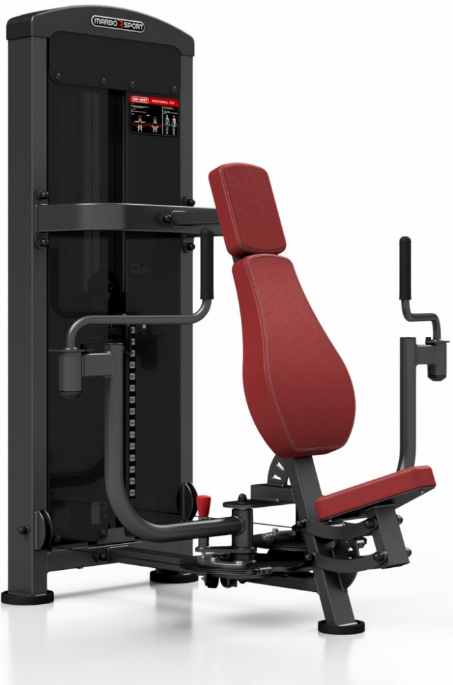 Stroj pro posílení prsních svalů MARBO MP-U227 je nekompromisní, profesionální vybavení pro Vaší posilovnu. Pro výrobu byly zvoleny ocelové profily 120x60x3mm a 80x40x3mm, které zaručují nečekanou trvanlivost. Zátěž tvoří 16ks 10kg cihel. Celková váha závaží dodávána se strojem je tedy 160kg. Ramena mají na sobě nezávislý chod. To zaručuje vysokou efektivitu tréninku. Veškeré nastavení se provádí červenými, pružinovými kolíky. Sedadlo má čtyři polohy, ramena mají pět poloh. Polstrovaní je ze syntetické kůže sešité režnou nití značky COATS vyplněné tvrdou pěnou, to celé ja na 3mm hrubé, ocelové desce. Tichý chod zajištuje zakrytování černým plastem, z přední části je kryt opatřen průhledem pro snadné nastavení požadovaného počtu cihel. Stroj je navíc opatřen velikou samolepkou, která instruuje cvičence, jaké cviky jdou na stroji provádět a které skupiny svalů daný cvik posiluje.