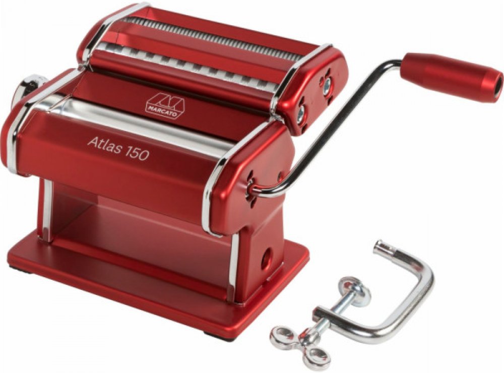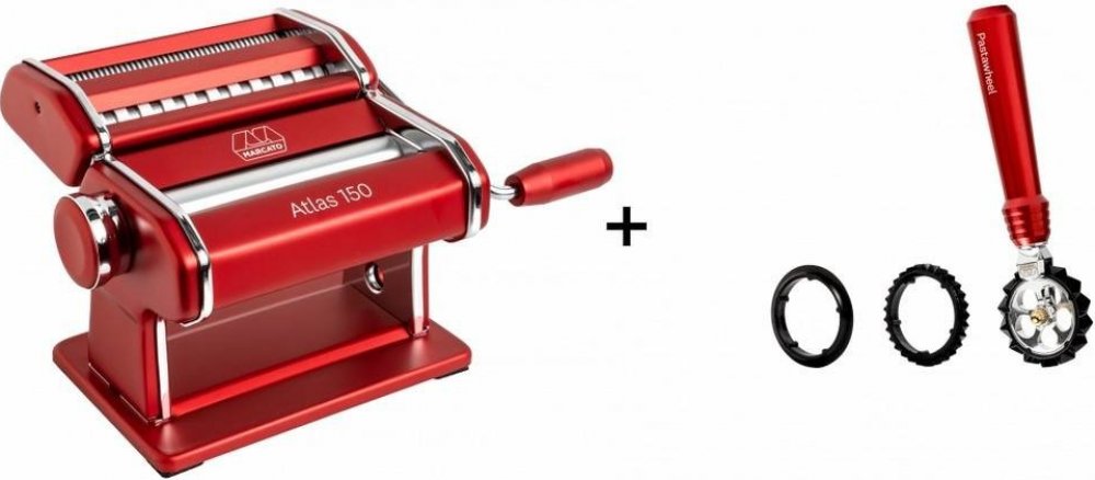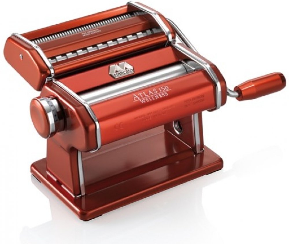Strojek na těstoviny Marcato Atlas 150 Design, červená, je nejoblíbenější ruční strojek na těstoviny, který by neměl chybět ve vaší domácnosti. Je vyroben z vysoce kvalitní chromované oceli a jeho hliníkové válečky prošly eloxovací úpravou, která zajišťuje, že se neuvolňují žádné částice. Strojek poskytuje vysokou stabilitu díky snadno upevnitelné svorce a umožňuje výběr z 10 různých tlouštěk těst...