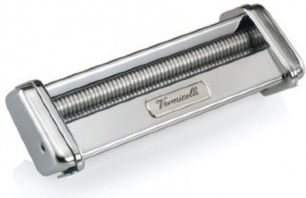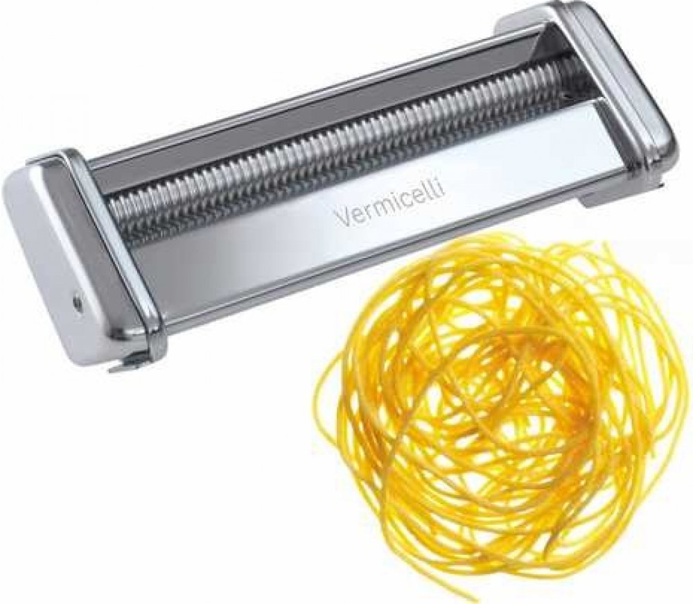 Nástavec na těstoviny Vermicelli k Atlas 150 - Marcato Kouzlete s novými tvary těstovin, díky nástavcům k mlýnku Atlas 150. Materiál: Vysoce kvalitní chromovaná ocel, válečky jsou vyrobeny z eloxované hliníkové slitiny Vermicelli mají kruhový průřez a průměr 1 mm. Doporučená tloušťka těstovinového plátu je poloha 5 na nastavovacím knoflíku strojku na těstoviny. Lze je používat klasicky ručně s kli...