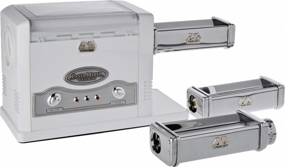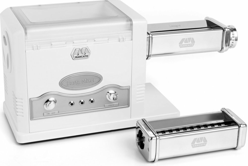 Pasta Fresca je elektrický stroj na těstoviny 2v1 italské značky Marcato, který kombinuje funkci hnětače a strojku na těstoviny, což umožňuje rychlou přípravu domácích těstovin. Je vybaven třemi nástavci pro lasagne, fettuccine a tagliolini, s dalšími pěti je pak kompatibilní. S horizontální hnětací lopatkou dosáhnete optimální konzistence těsta a pohodlně s ním pak při lisování manipulujete oběma rukama. Čištění je jednoduché díky snadno demontovatelným částem.Balení obsahuje:Balení obsahuje:Válec na lasagne (šíře 15 cm)Nástavec na fettuccine (šíře 6,5 mm)Nástavec na tagliolini (šíře 1,5 mm)Uživatelský manuál