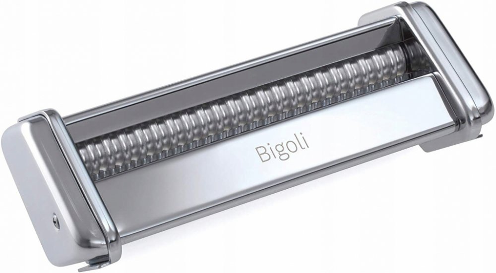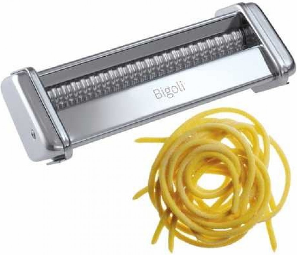 Náš Marcato Nástavec na těstoviny Bigoli je skvělý doplněk k mlýnku Atlas 150, který vám umožní vytvářet nové tvary těstovin. Tento nástavec je vyroben z vysoce kvalitní chromované oceli a výrobní válečky jsou z eloxované hliníkové slitiny. Těstoviny typu Bigoli mají kruhový průměr 3,5 mm. Doporučená tloušťka těstovinového plátku je na poloze 2 na nastavovacím knoflíku strojku na těstoviny. Můžete...