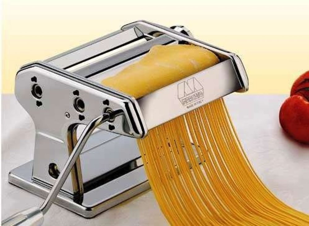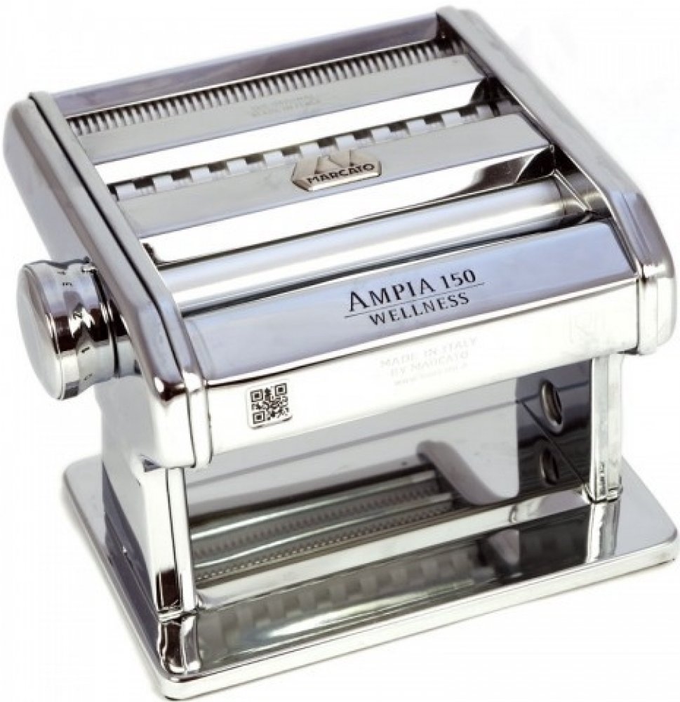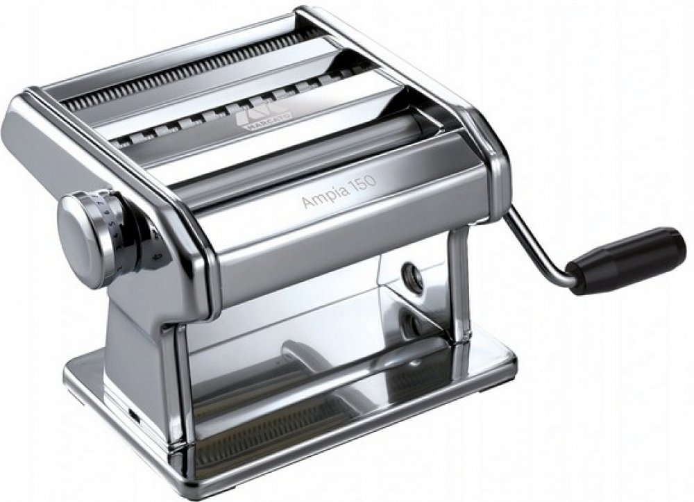 Ruční mechanický strojek na válení a krájení těsta od tradičního italského výrobce Vám pomůže snadno vyrobit domácí těstoviny. Strojek je celokovový z pochromované nerezové oceli. MARCATO strojek na nudle AMPIA 150 se uchycuje k pracovní desce pomocí ocelového upínáku. Lze s ním vyválet těsto na požadovanou tloušťku díky nastavovacímu kolečku. Tento strojek umí vyrobit lasagne (široké nudle, š. 15...