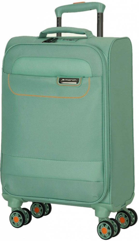 Cestovní textilní menší kufr z extrémně lehkého materiálu holandské značky March v zajímavé šalvějové barvě s oranžovými detaily. Nová technologie odlehčeného materiálu Vám přinese maximální pohodlí na cestách. Vydejte se stylově na cesty s novou řadou Tourer.