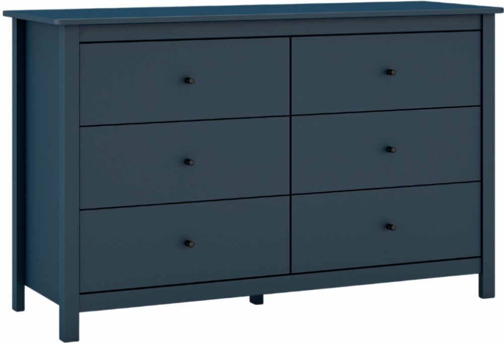 Elegantní komodu Marckeric Misti z masivního borovicového dřeva si zamilujete. Tmavě modrá barva vytváří atraktivní vzhled, díky čemuž získává skříň na unikátnosti a stylu. Bude skvělým doplňkem nejen vaší ložnice. Praktický úložný prostor zajišťuje hned několik zásuvek. Doporučujeme tuto komodu kombinovat také s ostatními produkty ze stejné kolekce.