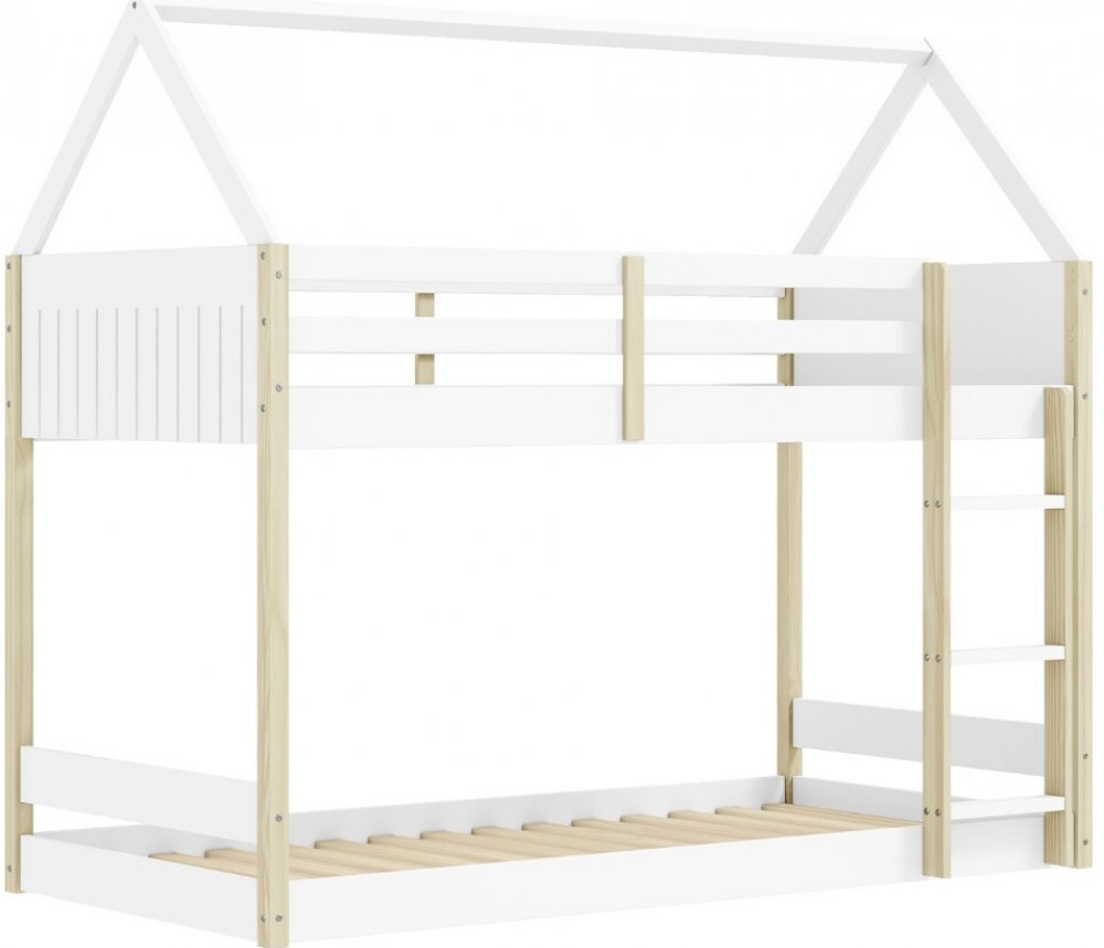 Dvoupatrová postel Sila od značky Marckeric promění dětský pokoj v kouzelný domeček plný fantazie. Kombinace bílého laku a přírodního borovicového dřeva působí svěže a hravě, zatímco střešní rám dodává posteli originální výraz. Horní i dolní lůžko nabízí pohodlný spánek sourozencům nebo prostor pro hosty, a zároveň šetří cenné místo v interiéru. Díky konstrukci z masivního dřeva a MDF je postel st...