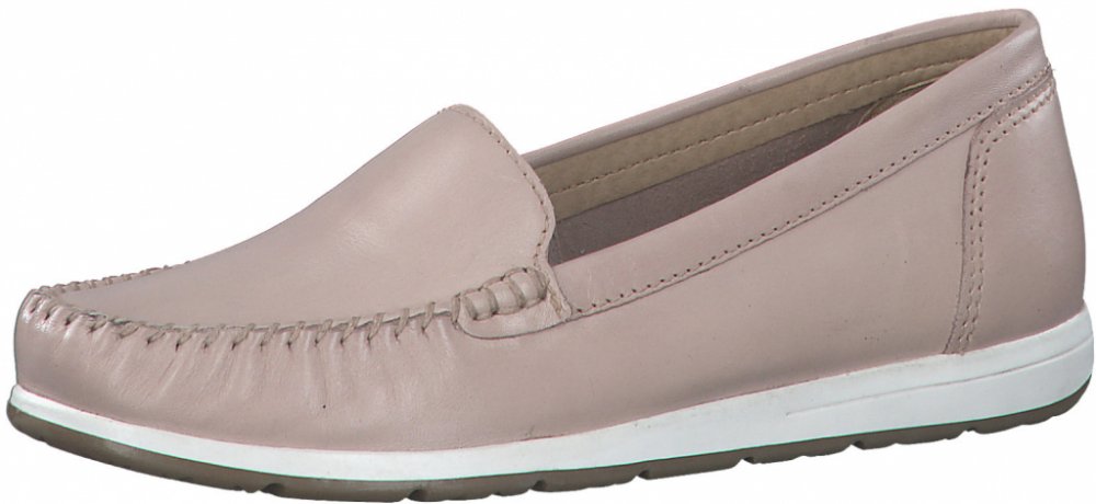 Dámské luxusní mokasíny značky Marco Tozzi. Klasické nadčasové boty vyrobené z pravé měkké hladké kůže, tentokrát v pastelově růžové barvě. Přední část je klasicky "šitá" velkými přiznanými švy. Stélka je také kožená a vybavena technologií FEEL ME - paměťová stélka. Designově je doladěna také podešev.
