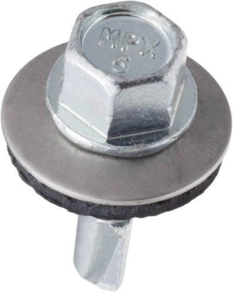 Samovrtný šroub s podložkou MPX 02 značky Marcopol je samovrtný bimetalový šroub, který má keramický povlak a zároveň je postříbřený a jeho rozměry jsou 4,8 mm x 20 mm, průměr hlavy je 10,5 mm. Šroub je určený pro spojování tenkých kovových prvků a pro překrývání ocelových plechů. Šroub je zařazen do korozní třídy C5, což značí jeho velkou odolnost a možné použití i v exteriéru. Šrouby jsou prodáv...