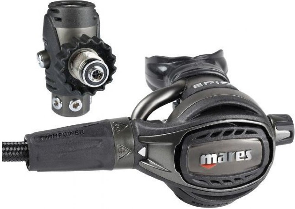 Mares Epic ADJ 82x PVD – je automatika vhodná pro potápění ve studené vodě. Má dva vysokotlaké výstupy a 5 středotlakých výstupů umístěných na otočné hlavě. Automatika tak umožňuje mnoho různých konfigurací a je zajímavá i pro sidemount.Celokovová konstrukce druhého stupně zajišťuje vysokou životnost a spolehlivost pro ponory ve studených vodách kdy využijete vysokou tepelnou vodivost kovu. Disponuje technologiemi VAD a Twin Power (VAD a VAD+).První stupeň je membánový, vyvážený. Má 5 středotlakých výstupů na otočnéhlavě, všechny mají DFC (nízký nádechový odpor druhého stupně i octopusu). NCC systém dává výborné vlastnosti do chladných vod.První stupeň Mares 82X DIN 300:DFC výstup na všech středotlakých výstupech (Dávají pohodlí při nádechu pro automatiku i octopus. Minimalizuje pokles středotlaku během nádechu i výdechu bez ohledu na tlak v láhvi)Systém NCC (zabezpečuje nejlepší výkon v chladných vodách)ACT ventil – zvyšuje životnostOtočná hlavaPrvní stupeň: Vyvážený membránovýHmotnost první stupeň (g) DIN300: 730Olejový/suchý kit-studená voda: DryVysokotlaké výstupy: 2 HP 7/16" UNF portsStředotlaké výstupy: 5 LP 3/8" UNF portsDruhý stupeň Mares Epic AdjVAD system (podpůrný vír)Nastavení nádechového odporuMateriál: celokovová konstrukce (je výhodná pro ponor v chladné vodě, navíc nevzniká sucho v ústech při ponoru)Superflexová hadice je velmi ohebná a lehkáTwin Power (ovládání průtoku vzduchu, možnost VAD nebo VAD+ pak je průtok vyšší)Snadné ovládání v rukavicích – velké klopné tlačítkoHmotnost druhého stupňě (g): 352Výhody:regulátor je výborně použitelný v chladné voděvyvážená membránová automatikavšechny středotlaké výstupy na 1. stupni mají DFC (snížený pokles středotlaku, protože jsou dva má druhý stupeň i octopus stejné vlastnosti)ootočná hlava, je možné si výstupy nastavit dle potřeby2. stupeň je celokovový (výhoda v chladné vodě + lepší životnost)VAD systém na druhém stupni zlepšuje vlastnosti proti zamrzáníTwin power umožní zvýšit průtok vzduchu na VAD+velké tlačítko vzduchové sprchyNevýhody:vysoká cena
