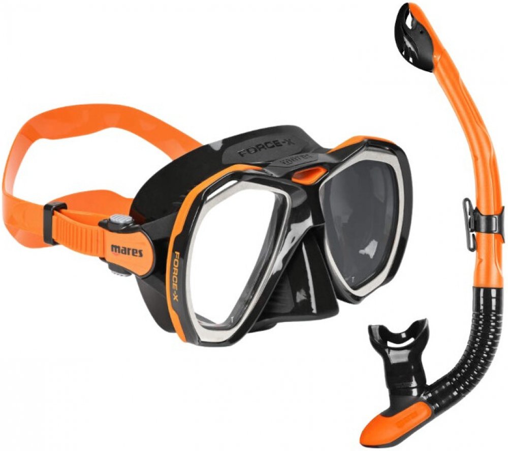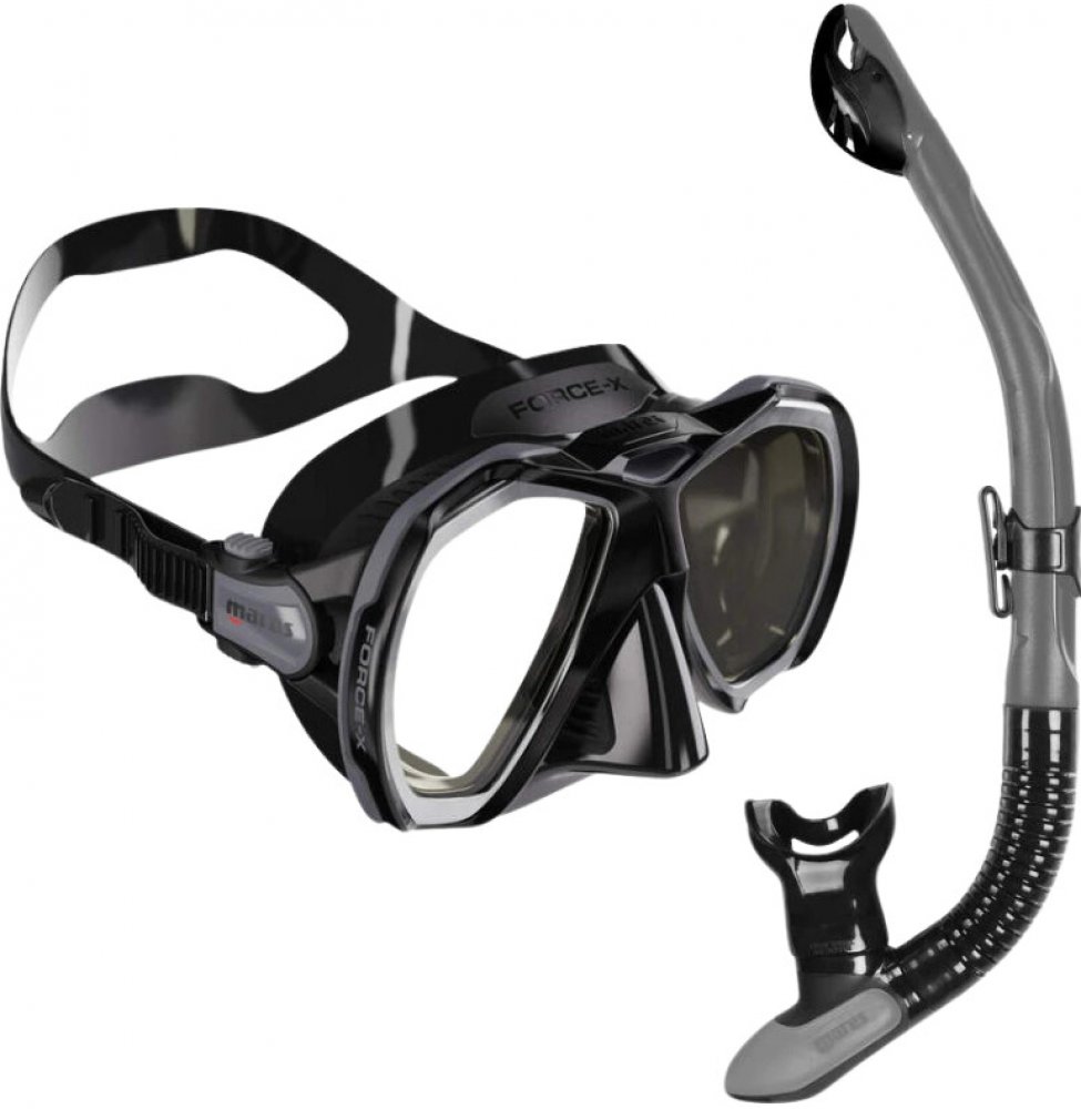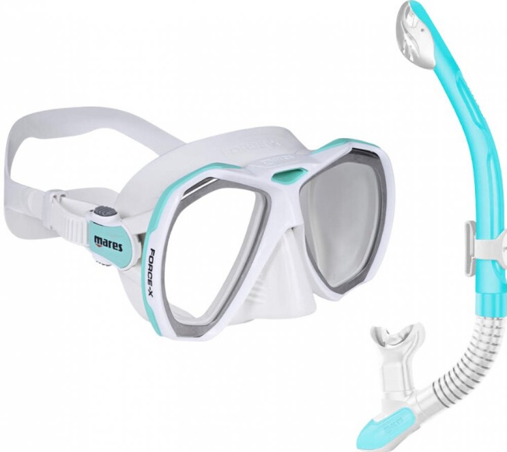 Šnorchlovací a potápačský set FORCE-X + ERGO DRY číryPotápěčský set s maskou FORCE-X s integrovanými nerezovými klipy a elegantní, plochý profil, který je zárukou vysoce odolné masky s bezkonkurenčním zorným polem, se šnorchlem ERGO DRY se suchou klapkou v čiré barvěPřinášíme vám potápěčský set Force-X, který spojuje moderní design, prvotřídní materiály a funkčnost navrženou pro maximální komfort i výkon pod hladinou. Vše v jednom balení - přesně to, co očekává i zkušený potápěč. Maska Force-X vyniká špičkovou ergonomií a použitím dvojitého silikonu LIQUIDSKIN, který zajišťuje vynikající utěsnění, pohodlí i při dlouhodobém nošení a výjimečnou životnost. Set je doplněn o šnorchl ERGO DRY - jeden z nejoblíbenějších na trhu. Díky suchému systému klapky se při ponoru zabrání vniknutí vody dovnitř šnorchlu, což zvyšuje bezpečnost a komfort při šnorchlování i potápění.Potápěčské brýle FORCE-XDokonalé vyjádření designu Mares v kombinaci s novou technologií FORCE-X.Při navrhování těchto masek spojil tým vývojářů a designérů Mares své vynikající dovednosti a zkušenosti a vytvořil novou řadu masek, která spojuje nový, komfortní design FORCE-X. Každá verze má svou vlastní charakteristiku, ale stejnou špičkovou technologii.Speciální kovové klipy usnadňují výměnu zorníků. Lícnice masky má uchycení ve tvaru písmene „Y“, které přispívá k rovnoměrnému rozložení tlaku a zlepšuje přilnavost silikonu. Anatomický silikonový řemínek dále doplňuje kombinaci komfortu a stylu.Hlavní specifikaceMonosilikonová lícnicePanoramatické zorné pole: Integrovaný rámeček z nerezové oceli s elegantním plochým profilem představuje vysoce odolnou masku s bezkonkurenčním zorným polem.Kovové klipy pro snadnou výměnu zorníkůFORCE-X skvěle sedí: Kombinace uchycení spon ve tvaru písmene "Y" Spony a jejich uchycení ve tvaru písmene "Y" napomáhají rovnoměrnému rozložení tlaku, zajišťují dokonalý komfort a snadné nastaveníAnatomický silikonový pásek v různých barvách je kombinací komfortu a styluOptická skla jsou k dispozici a jejich výměna je snadná díky rychloupínacímu systému zorníkůDodáváno v průhledné krabičce pro opakované použití Opravdu 100% funkční záležitost?Lidé se nás často ptají, zda je šnorchl ERGO DRY 100% funkční záležitost, odpověď je: "ano tento šnorchl je přesně takový, jak ho popisujeme a jeho prodejnost u nás láme každoročně nové rekordy". Patentovaný šnorchl s ergonomicky přiléhavým náustkem, wrapovou hadicí a výdechovým ventilem se samostatným, uzavíratelným mechanismem (klapkou). Jakmile se trubice ponoří pod vodní hladinu, tak už žádná voda se dovnitř dýchací trubice jednoduše nedostane. Hypoalergenní, anatomický náustek je vyrobený z mimořádně kvalitního silikonu. Stoprocentní kombinace špičky - Dry Top Mares a výdechového ventilu zajišťuje zcela suché dýchací prostředí. Ohebná wrapová hadice a její zakřivení zaručuje příjemné nasazení do úst. Šnorchl netáhne a ve vodě dokonale přiléhá k hlavě a hlavně nezpomaluje pohyb ve vodě. Úchyt na masku je otočný a výškově nastavitelný.
