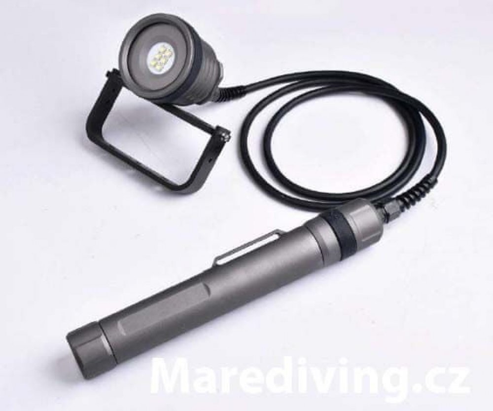 Baterka DCTV VIDEO Canister LIGHT Vysoce výkonná baterka určená výhradně na osvětlení větší plochy při natáčení videaspecifikace Potápěčské LED světlo s kuželem 120 stupňů 6 x Cree XM-L2 (U4), maximální výkon 3400 lumenů 3 x 26650 dobíjecí lithiové články, maximální doba svítivosti 23 hodin 3 x O-kroužek zajišťuje funkčnost a vodotěsnost až do hloubky 200 metrů Al T6061-T6 letecký hliník s eloxová...