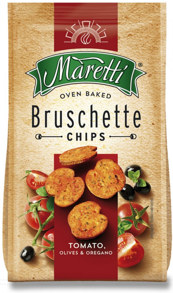 Maretti Bruschette Chips pečené krekry rajčata a olivy 140 g