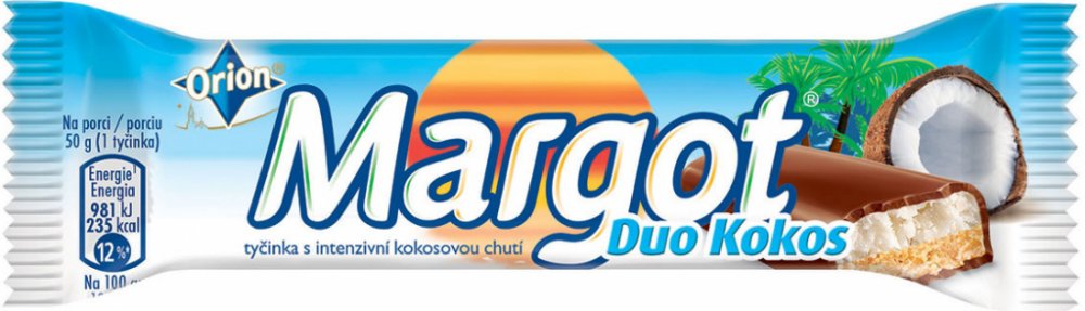 cena za 1 kg je 208.52 kčSójová tyčinka 72 % máčená v bílé polevě 28 %.Ochutnej svůj kousek exotiky v bílé!Užij si oblíbenou kokosovou chuť Margot nově i v jemné bílé polevě.Další popisStaň se fanouškem na www.facebook.com/margotczsk.Sójová tyčinka 72 % máčená v bílé polevě 28 %.Složení :Cukr,Sójová mouka 15 %,Glukózový sirup,Rostlinný tuk,Ztužený rostlinný tuk,Kakaový prášek se sníženým obsahem t...