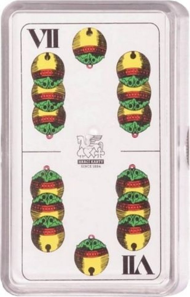 Klasické dvouhlavé mariášové karty s typickým károvaným reversem přinášejí nadčasový design s motivy legendy o Vilému Tellovi. Obrazy es symbolizují roční období a díky praktickému formátu a odolnému papíru jsou karty oblíbené mezi hráči.Objevte tradiční mariášové karty, které si už 150 let drží svůj ikonický vzhled. Dvouhlavý motiv umožňuje pohodlnou hru a károvaný revers je pro tuto klasiku typi...