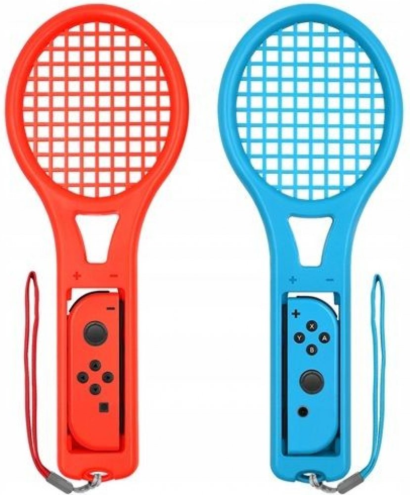 TENISOVÉ RAKETY PRO ŘÍDICÍ JOY-CON pro konzolu NINTENDO SWITCH vysoká kvalita odpovídající design Včetně 2× bezpečnostního řemínku na zápěstí tuhá konstrukce pro pohodlné a bezpečné uchopení příjemná na dotek struktura rukojeti perfektní nápad na dárek 2 PCS SET.