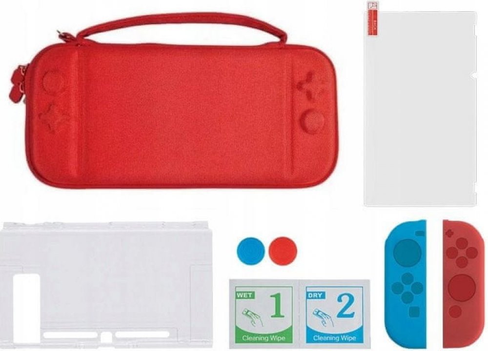 MARIGames Set 6v1 pouzdro Skleněné pouzdro pro Nintendo Switch / Dss-106 červené pouzdro