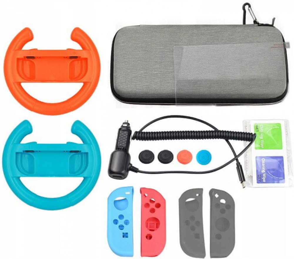 Vyhrazená sada příslušenství 13v1 pro konzolu NINTENDO SWITCH Vysoká kvalita Všechny prvky sady jsou věnovány konzole NINTENDO SWITCH Perfektní dárkový produkt pro každého majitele konzoly Sada se skládá z: Tuhé pouzdro se zipem a karabinou pro konzolu, paměťové karty s hrami a