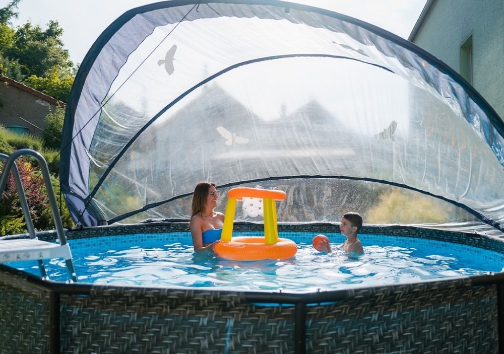 Průhledné zastřešení vám umožní sledovat dění okolo i uvnitř bazénu. Vaše děti se do vody nedostanou bez dozoru, proto zůstanou v bezpečí, dokud nebudete mít možnost s nimi na zahradě trávit čas. Zároveň se váš pes, kočka či jiný domácí mazlíček nerozhodne k náhlému koupání, pokud bazén necháte zakrytý. Díky zastřešení si usnadníte údržbu bazénu. Nečistoty, listí a dešťová voda sklouznou po krytu. Produkt zároveň chrání vodu i bazén před účinky UV záření.