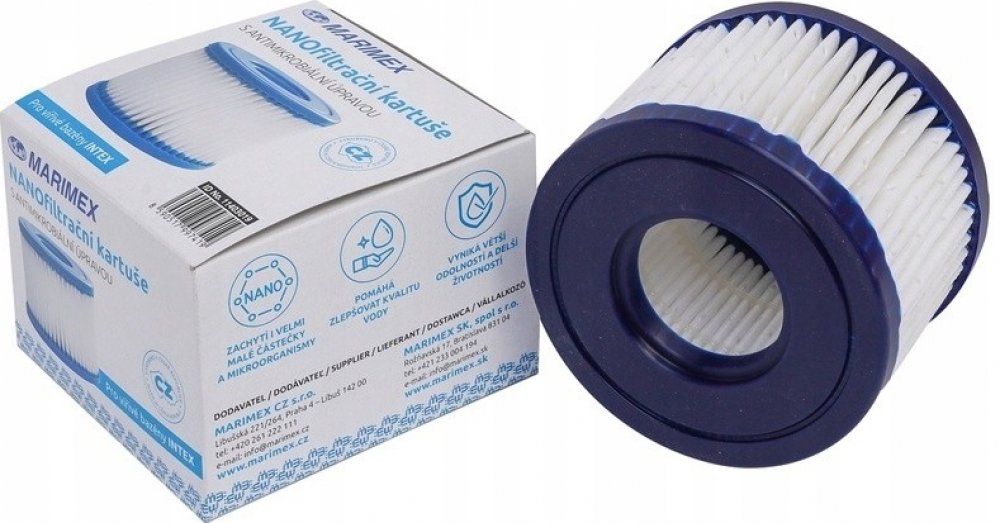 Vlastníte vířivku Intex nebo Pure Spa? Pořiďte si k nim náhradní nanofiltrační kartuši značky Marimex. Oproti běžným kartuším je až 3x účinnější. Zachytí i velmi malé částice a mikroorganismy, takže snáze udržíte vodu v bazénu čistou.