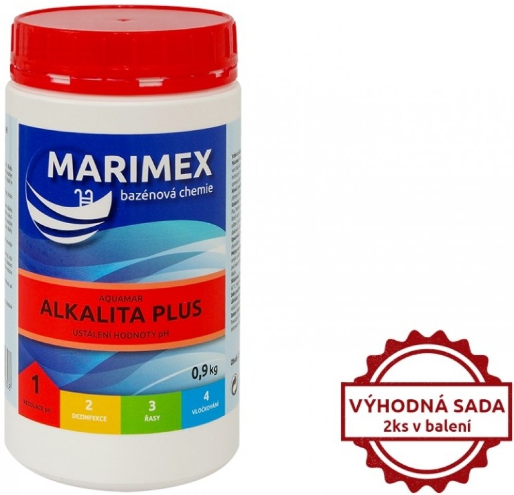 Výhodná sada 2 ks v balení! Máte problém s častým kolísáním pH? Vaše bazénová voda může být vyčpělá -> zajistěte si díky přípravku Aquamar Alkalita plus živější a jiskřivější vodu v bazénu. Alkalita je také nazývána pod pojmem „Uhličitanová rovnováha“. To znamená, že pokud má bazénová voda přípustnou hladinu alkality a nachází se tedy v „uhličitanové rovnováze“, voda je schopna přirozeně vyrovnávat hladinu pH. Z důvodu používání například ohřevu vody a dezinfekčních prostředků může docházet ke snižování alkality vody a následně ke kolísání pH. Je-li hodnota celkové alkality příliš nízká, pH není stabilní a má velmi časté výkyvy. Naopak při vysoké hodnotě celkové alkality bude mít hladina pH tendenci vracet se k původnímu vyššímu pH. Aquamar Alkalita plus je práškový přípravek na zvýšení alkality bazénové vody a stabilizaci pH. Pokud je celková alkalita udržována ve správném rozmezí 80 – 120 ppm, brání náhlým změnám hodnot pH a optimalizuje účinek dalších přípravků na ošetřování bazénové vody. Hodnota alkality by měla být vždy upravena ještě před tím, než změříte a upravíte hodnoty pH a volného chloru. Návod k použití: Před použitím přípravku změřte hodnotu celkové alkality pomocí proužkového testeru. Pokud je nižší než 80 ppm, přidejte přípravek Aquamar Alkalita Plus a pokud je vyšší než 120 ppm, přidejte přípravek Aquamar pH minus. Dávkování: Pro zvýšení alkality o 10 ppm přidejte 18 g přípravku na 1m3. Potřebné množství vypočítejte podle objemu svého bazénu. Odměřené množství prášku rozpusťte v několika litrech vody a roztok vlijte do bazénu v oblasti přítoku vody (případně do sběrače nečistot) za provozu filtračního zařízení. V jednom kroku nezvyšujte alkalitu o více než 50 ppm. Pokud je nutná větší úprava alkality, proveďte další dávkování až po dostatečném promíchání vody.