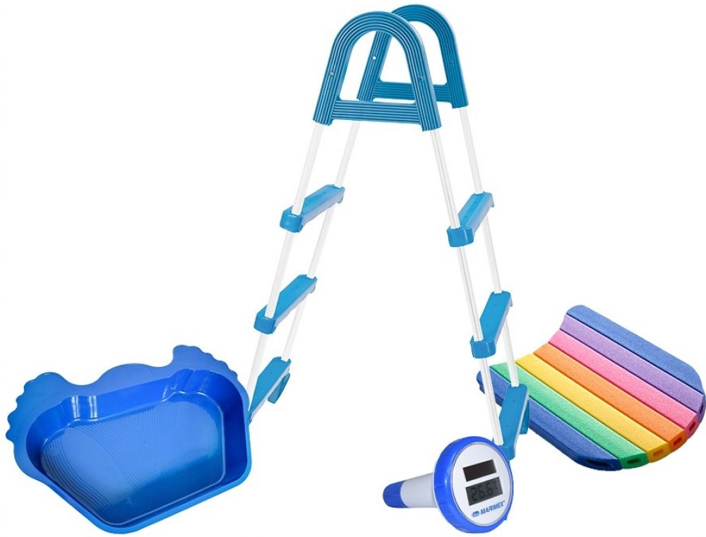 Set obsahuje tyto produkty: 1x Schůdky k bazénům - výška stěny do 1,22 m 1x Vanička na oplach nohou - Yettiho stopa 1x Plovoucí digitální teploměr 1x Plavecká deska - kick Schůdky k bazénům - výška stěny do 1,22 m. pro pohodlné a jednoduché koupání v bazénu používejte naše kovové schůdky s plastovými stupínky. Při jejich uklizení zabráníte dětem nebo zvířatům spadnout do bazénu schůdky jsou tak dalším bezpečnostním prvkem pro váš nadzemní bazén nosnost schůdků je 100 kg šířka schodu: 35 cm jsou určeny pro bazény, které mají výšku stěny max. 1,22 m Vanička na oplach nohou - Yettiho stopa. stabilní plastová vanička určená na oplach nohou před vstupem do bazénu je vhodná ke každému nadzemnímu bazénu a napomáhá udržovat bazénovou vodu čistou rozměry: (vnitřní): 33 x 51 cm / (vnější): 39,5 x 55,5 cm / hloubka: 8 cm materiál: recyklovatelný polypropylen Plovoucí digitální teploměr. určený k přesnému měření teploty bazénové vody rozsah měření: -20°C – 50°C (-4°F - 122°F) zdroj: 1x1,5V AA (není součástí balení), solární panel vodotěsnost: IP8 Plavecká deska - kick. pomůcka na plavání pro děti a dospělé rozměr: 48x30x3 cm