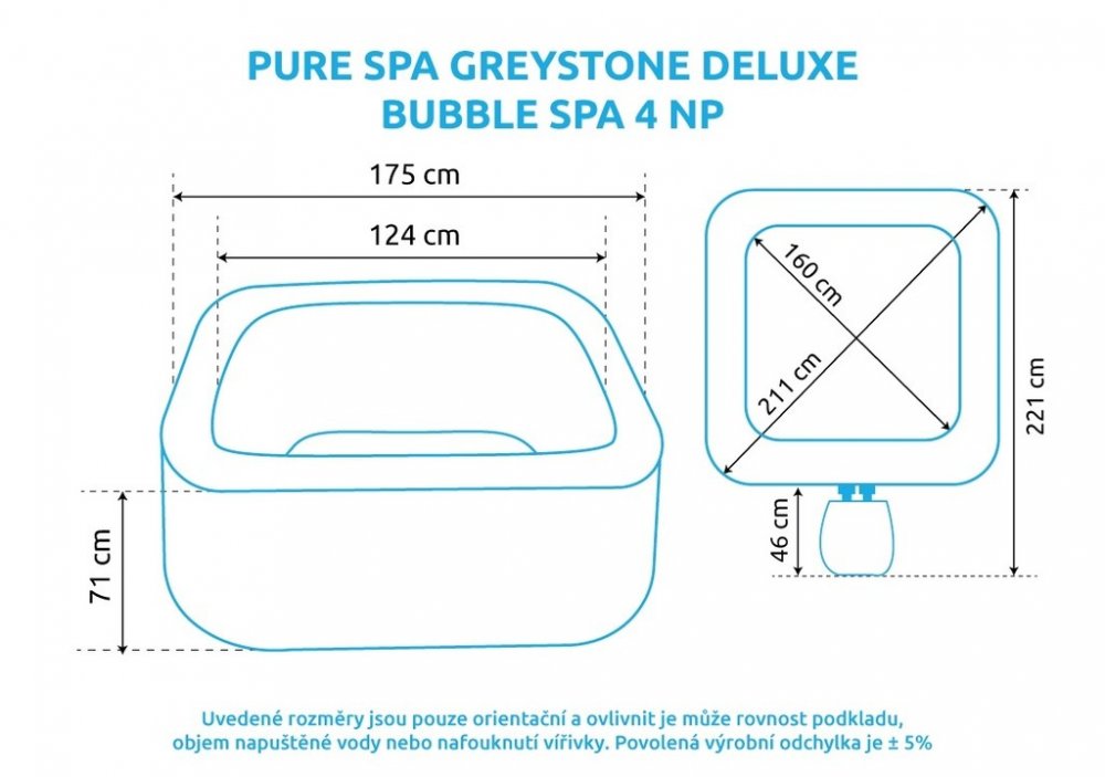 2.2 kW 795 l 175 x 175 x 71 cm 1,5-2,5 °C/hod. Marimex 4 140 ks nafukovací vzduchové čtvercové šedé venkovní s kartušovou filtrací