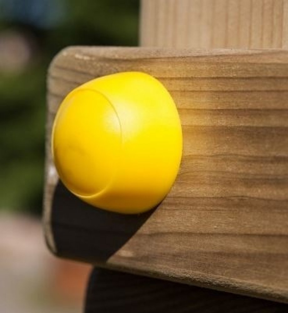 Dětské hřiště je připevněno do země pomocí kotev, které brání převrácení a pádu věže.