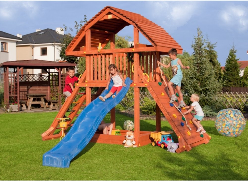 Dětské hřiště MARIMEX PLAY 003 skvěle zabaví Vaše děti a bude ozdobou každé zahrady. Hřiště má vysokou věž s velkým prostorem na hraní. Při dobývání této věže děti zažijí spoustu zábavy a budou rozvíjet svůj pohybový aparát.