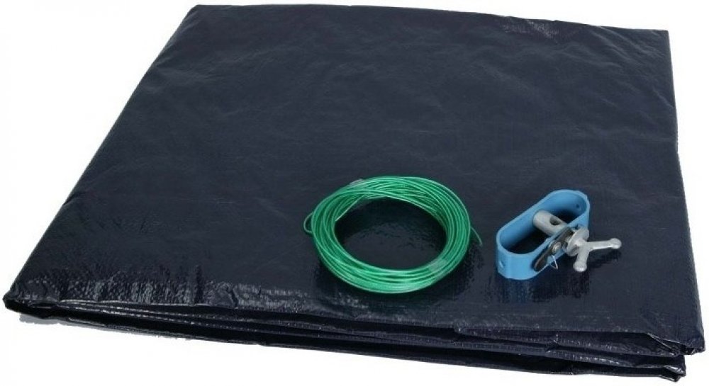 Modrá krycí plachta pro bazény o průměru hladiny 3,66 m s upínacím zámkem. Průměr plachty je 4,4 m. Krycí plachta je vyrobena z PE folie 110g/m2. Brání spadu nečistot do bazénu a zároveň zabraňuje úniku vody a chemických prostředků vlivem odpařování. Plachta se přetahuje přes hranu bazénu a stahuje se lankem s upínacím zámečkem.