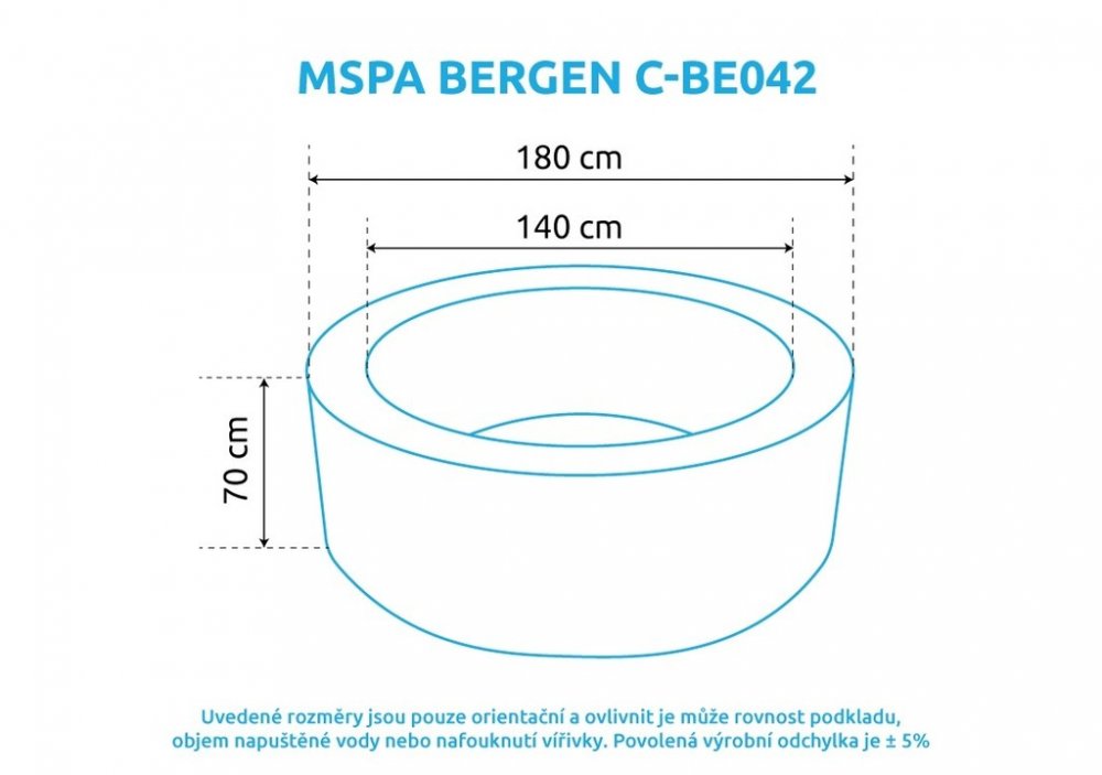 - Vnější rozměry: 180 x 180 cm (po naplnění vodou, tolerance ± 5%)