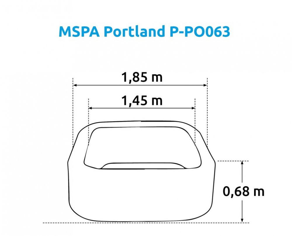 Typ konstrukce: nafukovací Tvar: čtverec Počet osob: 6 Objem vody (l): 930 Vnější průměr (cm): 185 Vnitřní průměr (cm): 145 Materiál: PVC se síťovinou Výška (cm): 68 Ovládání přes APP: NE Možnost provozu v zimě : NE Počet vzduchových trysek: 132 Počet směrových trysek: Ohřev vody do (°C): 40 Systém slané vody: NE Systém změkčování vody: NE Termoizolační kryt: ANO Termoizolační podložka: ANO