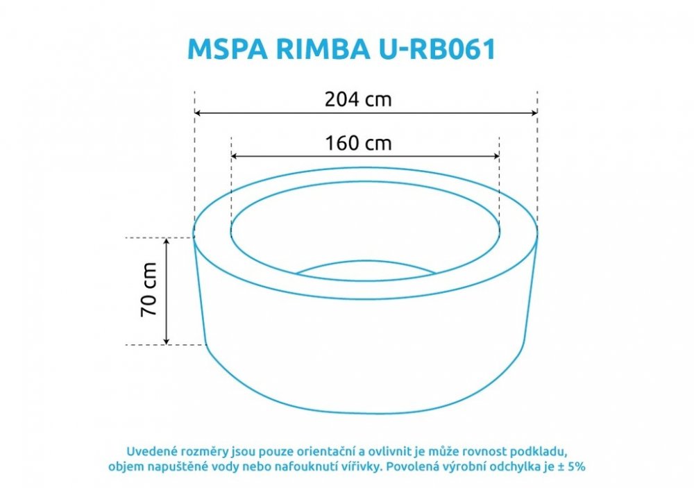 Vnější průměr: 204 cm (po naplnění vodou, tolerance ± 5%)