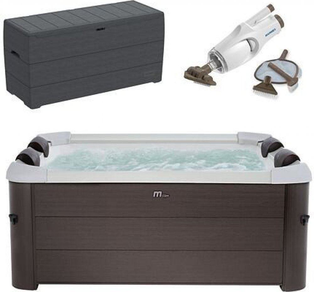 Příslušenství SPA (obsaženo v balení vířivky): Vířivý bazén ovládací a motorová jednotka 4x boční panel + 4x horní lišta + 4x spodní lišta + 4x rohová stojna + 4x rohová lišta + 4x kryt rohové lišty + 4x spoj bočního panelu vnitřní RhinoTech prémiová PVC vložka 2x filtrační vložka, základna filtrační vložky skládací termoizolační podložka z EVA pěny adaptér na zahradní hadici LED pásek s dálkovým ovládačem termoizolační kryt,nafukovací kryt 4x opěrka hlavy plovák na chemii Hmotnost 1 ks zabaleného zboží: 111,40 kg.