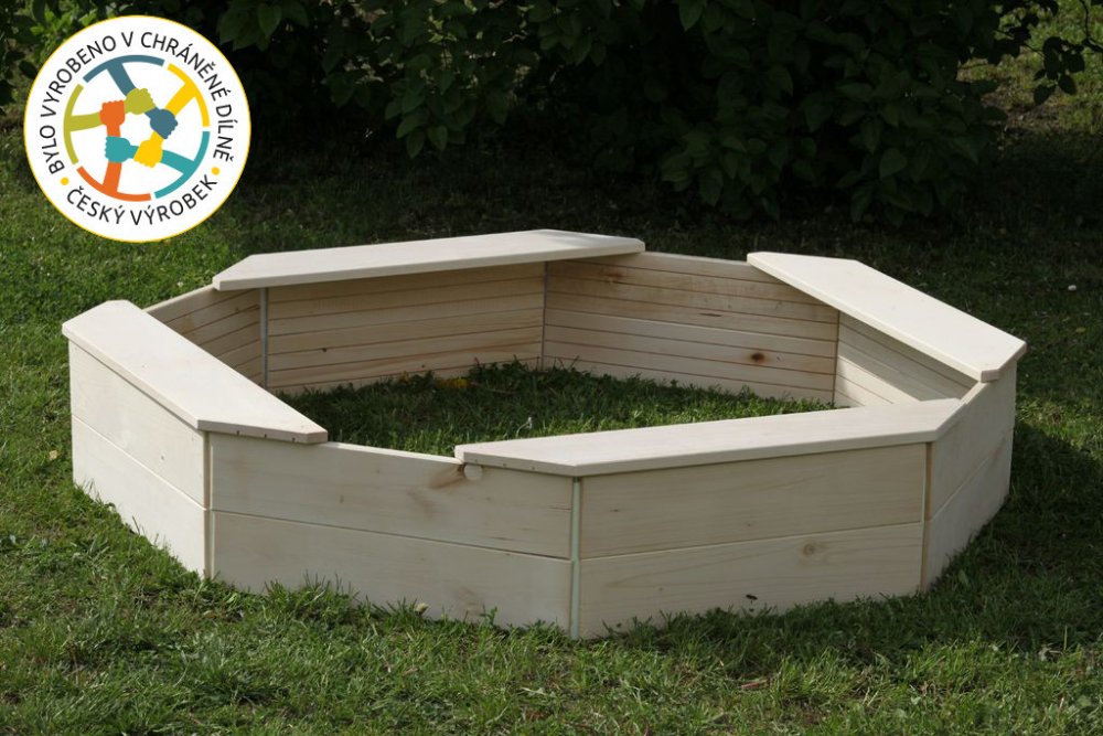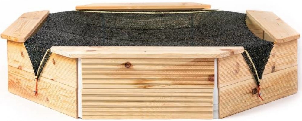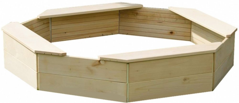 Dřevěnné osmihranné pískoviště o rozměrech 130 x 130 x 26 cm udělá radost vašim dětem na každé zahradě. Pískoviště je vybaveno sedáky na čtyřech stránkách. Než začnete pískoviště sestavovat je nutné ho nechat 24 hodin při pokojové teplotě odpočinout. Plocha pro instalaci pískoviště musí být rovná a bez drnů.