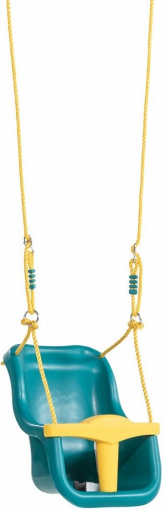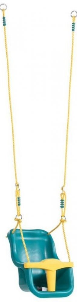 Houpací sedátko pro nejmenší. Určeno pro děti ve věku do 3 let. Nastavitelná délka lana, kovový úchyt pro zavěšení houpačky, bezpečnostní upínací pás.