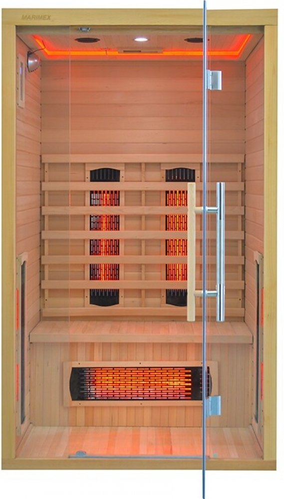 Infrasauna Marimex POPULAR 2003 L je vhodná až pro 2 osoby. Výhodou je funkce LED harmony, díky které si užijete relaxaci užitím tlumeného uklidňujícího barevného spektra LED osvětlení. Do výbavy infrasauny se řadí také rádio s mp3 přehrávačem a bluetooth, střešní ventilace a teplotní senzor. V infrasauně je rozmístěno 5 redlight topidel. Redlight topidla pracují s povrchovou teplotou 250 až 300 stupňů Celsia. Vlastnosti infrasauny Marimex POPULAR 2003 L. LED Harmony. LED Harmony zajišťuje přívětivé osvětlení uvnitř sauny. Díky barevnému LED světlu vytvoříte při saunování příjemnou atmosféru, která vás zklidní a napomůže relaxaci. Barevná terapie podporuje psychickou pohodu, pomáhá odbourávat stres a zlepšuje náladu. Tlumené světlo zároveň působí blahodárně na unavené oči a tělo, čímž umocňuje celkový zážitek ze saunování. LED Harmony kombinuje estetiku a wellness efekt v jeden harmonický celek. Ovládání přes aplikaci. Mějte svou saunu pod kontrolou odkudkoliv. Díky integrovanému Wi-Fi modulu můžete vzdáleně měnit nastavení přes mobilní aplikaci. Snadno nastavíte teplotu, osvětlení, topidla nebo hudbu – vše, co byste běžně ovládali na displeji sauny. Aplikaci lze propojit i s chytrými domácnostmi, takže ovládání se stane součástí vašeho běžného komfortu. Rádio s bluetooth. Rádio s bluetooth posune relaxační zážitek na novou úroveň. Díky bluetooth reproduktorům si můžete snadno přehrát oblíbenou hudbu, podcasty nebo relaxační zvuky přímo z telefonu, a vytvořit tak atmosféru přesně podle vašich představ. Hudba pomáhá odbourávat stres, zlepšuje náladu a může dokonce podpořit uvolnění svalů během saunování. Bezdrátové propojení přes bluetooth je pohodlné, neřešíte žádné kabely a vše ovládáte prostřednictvím vašeho telefonu. Rádio s bluetooth snadno promění každé saunování v dokonalý odpočinek. Materiál. Hemlock: je odolné dřevo z kanadského jedlovce. Jeho světlehnědý až růžový tón vytváří jedinečný a charakteristický obraz. Topidla. V infrasauně je rozmístěno 5 redlight topidel. Redlight topidla pracují s povrchovou teplotou 250 až 300 stupňů Celsia. Ve srovnání s karbonovými se redlight zářiče zahřejí velice rychle. Nevýhodou může být vyšší spotřeba, ale vždy záleží na typu infrasauny. Pořizovací náklady tohoto typu zářičů jsou nižší, životnost je cca 8 000 hodin. Při běžném saunování (3x týdně 45 min) vydrží cca 60 let. Redlight topidla dosahují téměř okamžitě požadované teploty. Jsou tvořeny trubicemi z křemičitého skla, které kromě intenzivního sálavého tepla vyzařují také světlo umocňující jejich blahodárné terapeutické účinky. Vyzařují teplo na krátkých vlnových délkách. Topidla - technické informace. Typ topidla Hodnota EMF IR-A IR-B IR-C Vlnová délka Hloubka proniknutí do kůže Karbonová 30-80 mGS 0% 0% 100% 5.6-15 µm 2 mm Keramická 30-80 mGS 0% 0% 100% 5.6-15 µm 2 mm Red-Light 30-80 mGS 0% 10% 90% 5.6-15 µm 3-5 mm Zdraví. Pravidelné používání infrasaun pozitivně ovlivňuje lidské zdraví. Saunování snižuje bolest kloubů a zad, napomáhá od menstruačních bolestí, léčbě kožních ekzémů a lupénky, zvyšuje prokrvení, působí protizánětlivě nebo podporuje boj proti celulitidě. V neposlední řadě navozuje psychickou pohodu, snižuje svalový spasmus a posiluje kardiovasklulární kondici. Infrasaunu je možné používat i v případech, kde zdravotní stav nedovoluje použití klasické sauny. Samotné saunování navozuje příjemný pocit pohody, uvolnění a relaxace. Infrasauny jsou natolik bezpečné, že se jejich technologie používá i v dětských inkubátorech. Certifikát FSC ®. Produkt splňuje podmínky certifikace Forest Stewardship Council (FSC). Tato mezinárodní certifikace zaručuje, že dřevo pochází z lesů, které jsou obhospodařovány šetrně a zodpovědně. Cílem systému je chránit přírodu, podporovat spravedlivé pracovní podmínky a zajistit dlouhodobě udržitelné hospodaření s lesy. Nákupem tohoto produktu tak přispíváte k ochraně přírody a podpoře šetrného lesního hospodaření. Výhody infrasaun Marimex. Zdravotní přínos. Pocení a detoxikace probíhá již při 45-50° C. Díky tomu je proces infrasaunování přístupnější a vhodný i pro děti. Nízká spotřeba. Infrasauna se zapojuje do zásuvky o příkonu 230 V. Spotřeba je velmi podobná jako spotřeba elektrické žehličky. Snadná instalace. Stavbu infrasauny hravě zvládnou dvě osoby do jedné hodiny. Jediné, co bude k montáži potřeba, je šroubovák. Další výhody infrasaun Marimex. Spotřeba. Provoz infrasaun je ve srovnání s klasickými saunami výrazně úspornější. Hlavním důvodem je nižší provozní teplota. Infračervené záření proniká hluboko do tkáně, proto není třeba saunovací proceduru opakovat v několika cyklech za sebou, jako tomu je u finské sauny. Náklady na jeden saunovací cyklus. Náklady na provoz Průměrný příkon Spotřeba jednoho saunovacího cyklu (30 min. při 55°C) Varná konvice 2 kW 0,16 kW (ohřátí 1,5 l. vody, 5 minut) Infrasauna pro 1 osobu 1,4 kW 0,7 kWh Žehlička 2 kW 1 kWh (30 min. žehlení) Infrasauna pro 2 osoby 2 kW 1 kWh Infrasauna pro 3 osoby 2,3 kW 1,2 kWh Infrasauna pro 4 osoby 3 kW 1,5 kWh Umístění infrasauny. Infrasauna je určena k používání v interiéru. Měla by být postavena ve vnitřních prostorách, ve kterých teplota neklesá pod 15 °C. Ideálně například v ložnici, koupelně, domácím fitness, v suterénu, či technické místnosti. Jako vhodný podklad slouží jakýkoliv rovný povrch. Mohou to být dlaždice, lino, koberec, nebo například parkety. Infrasauna není konstruována pro umístění do zahradního domku, pergoly ani ch
