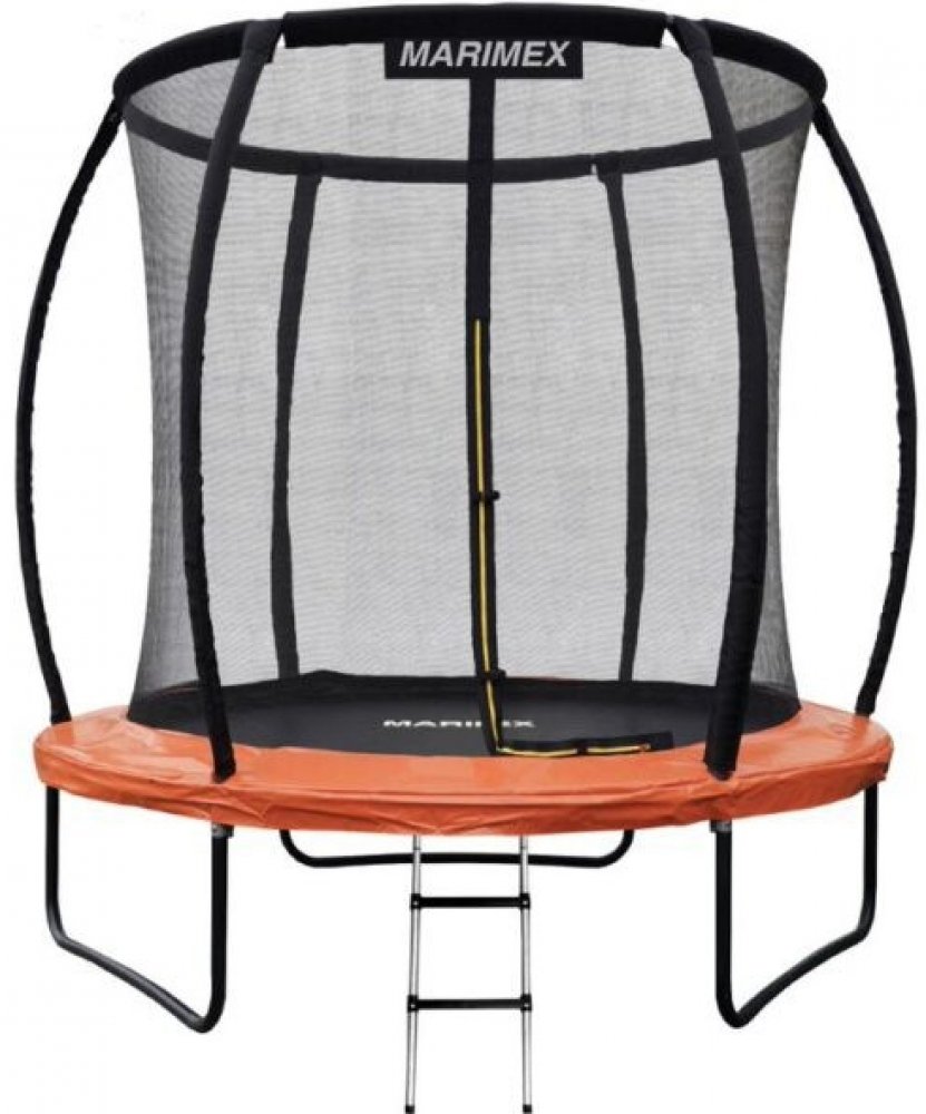 Nejmenší trampolína Marimex z řady Premium je skvělým doplňkem každé zahrady. Dokonalou stabilitu zajišťují tři nohy ve tvaru písmene U (celkem 6 nohou).Trampolíny Marimex Premium nevynikají pouze novým designem a barevností, ale také větší stabilitou, pevností a bezpečností. Zvýšené stability trampolín Marimex Premium je dosaženo pomocí vyššího počtu nohou. Bezpečnost zajišťují zesílené ochranné kryty pružin a nová technologie T-spojů. Vnitřní ochrannou síť podpírá osm dynamicky prohnutých tyčí a napnutou ji drží zpevněná horní obruč. Skákací plocha je vyrobena z velmi odolného a neabrazivního materiálu s vysokou životností. Materiál odrazové plochy patří k nejkvalitnějším na trhu. Plocha je vyrobena ze speciálního polypropylenu s ochranou proti UV záření, který zaručuje dlouhou životnost. Speciální neabrazivní (hladká) povrchová úprava zabrání odření kůže při dopadu. Vnitřní ochrannou síť najdete přímo v balení, nemusíte si ji dokupovat zvlášť. Vnitřní ochranná síť je bezpečnější než vnější síť - brání přístupu skákajícího do části s pružinami. Vstupní prostor je zajištěn třemi přezkami a brání vypadnutí. Tyče jsou obaleny ochranným návlekem z měkčené pěny. Nohy trampolíny jsou samostatné a zvyšují stabilitu celé trampolíny. Spojení tyčí nohou trampolíny a sítě je jištěno speciálními sponami.Trampolíny jsou určené pro náročné pohybové aktivity, proto klademe důraz na jejich bezpečnost a spolehlivost. Použití kvalitních materiálů a moderních technologií při výrobě řadí naše trampolíny mezi nejbezpečnější a nejspolehlivější na českém trhu.Technické údaje:materiál a složení ochranných prvků:konstrukce: galvanizovaná ocel s černým práškovým nátěremtrubky a stojny: pozinkovaná ocelprůměr tubky: 38 mmsíla trubky rámu: 1,2 mmsíla trubky nohy: 1,2 mmskákací plocha: PP (polypropylen)ochranná síť: PE (polyethylen)ochranný kryt pružin: 650g PVC+12 mm EPE + PEvnitřní ochranná síť: průměr: 201 cmvýška: 180 cmprůměr obruče: 25 mmtloušťka obruče: 1,2 mmpěnový rukáv stojny: měkčená pěnarukáv: ribbon s poutkemrozměry trampolíny:průměr trampolíny: 244 cmprůměr skákací plochy: 201 cmvýška skákací plochy: 54 cmvýška vč. sítě: 234 cmnosnost: 50 kgpočet nohou: 3parametry:druh trampolíny: nadzemníprovedení trampolíny: pružinovápočet pružin: 48počet tyčí: 6ochranná síť: anospodní ochranná síť: nežebřík: anodoba montáže: 45 minuthmotnost: 40 kgObsah balení: 1 x trampolína1 x ochranná síť1 x žebříkrozměry balení: 132 x 57 x 20 cm
