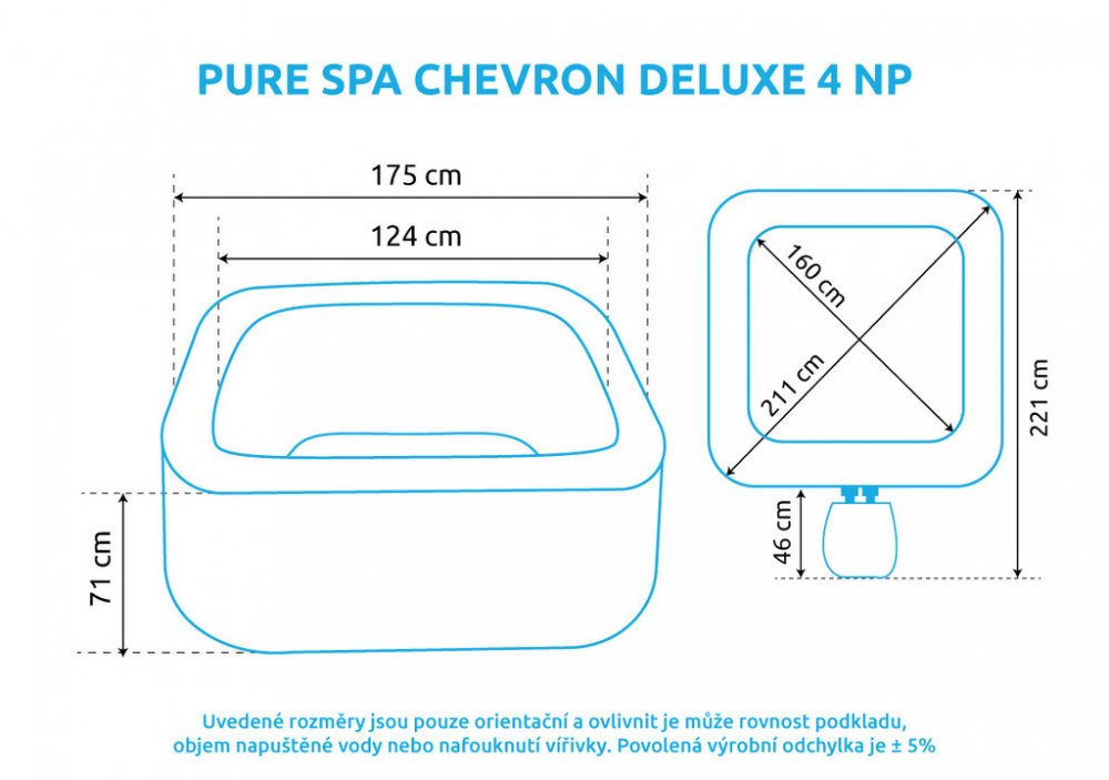 Instalace vířivého bazénu je jednoduchá. Najdete pro něj rovné místo a nafouknete vířivku elektrickou pumpou (není součástí balení). Přibližně do 10 minut máte bazén připravený a můžete relaxovat.