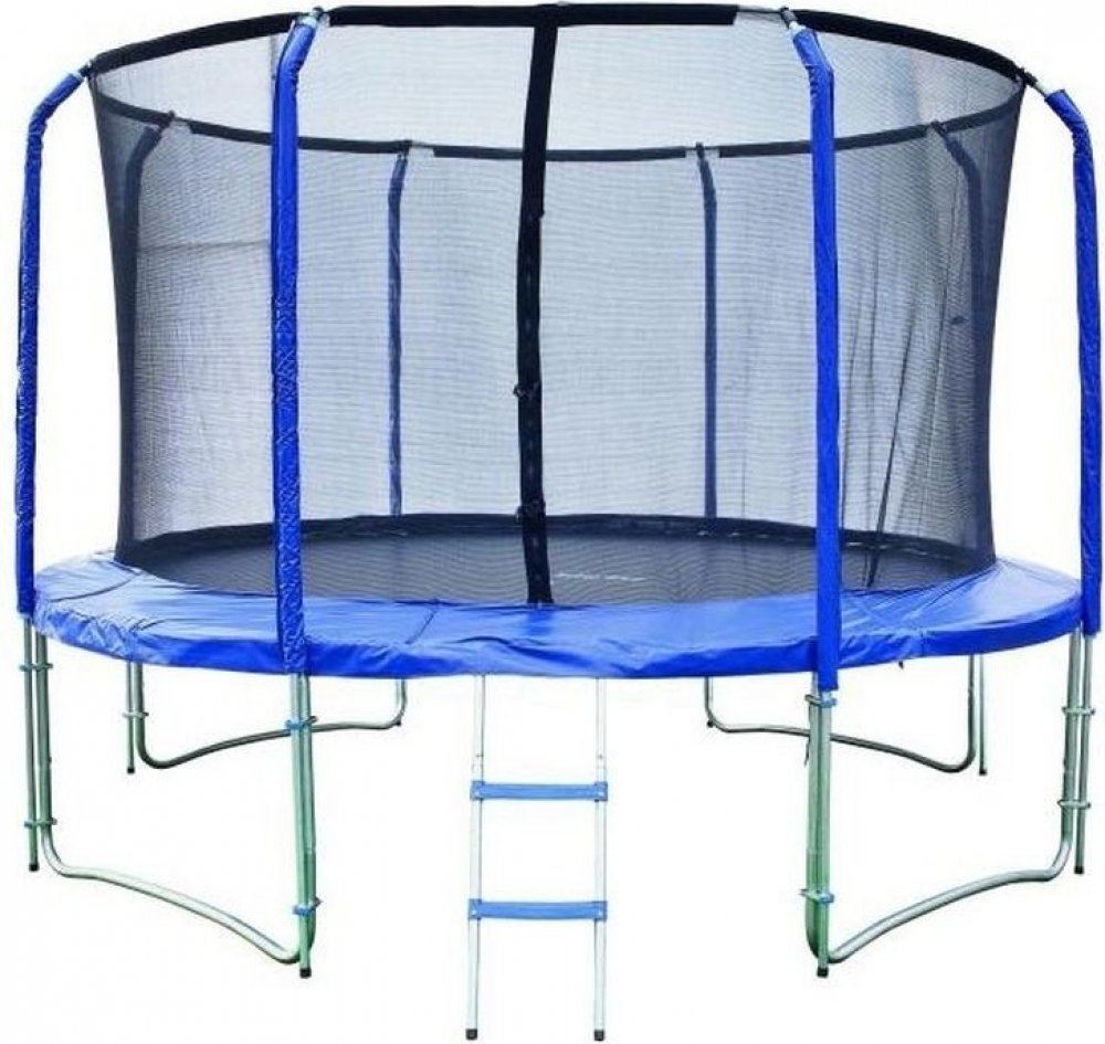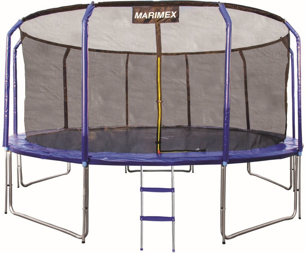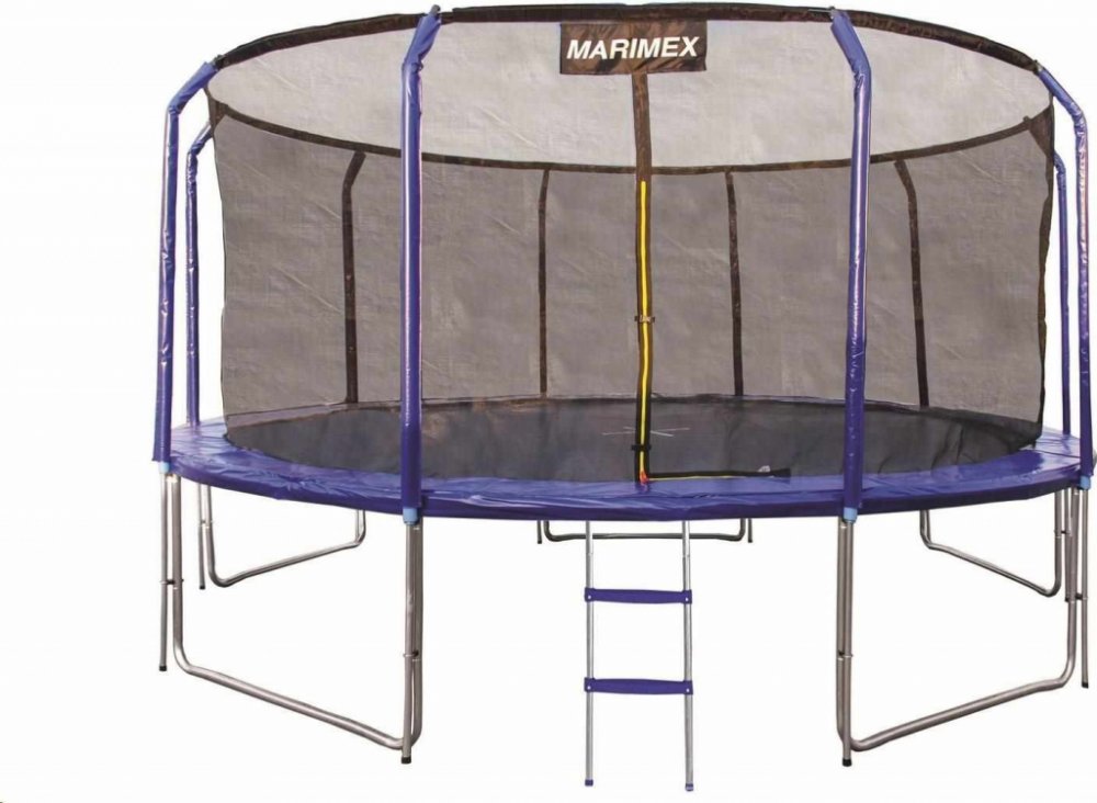 Trampolína Marimex je skvělým doplňkem každé zahrady. Děti skákání na trampolíně milují a při skákání si snadno zacvičí i dospělí - nosnost je až 150 kg. Dokonalou stabilitu zajišťuje pět nohou ve tvaru písmene U. Tato trampolína je z naší nabídky největší. Materiál odrazové plochy patří k nejkvalitnějším na trhu. Plocha je vyrobena ze speciálního polypropylenu s ochranou proti UV záření, který zaručuje dlouhou životnost. Speciální neabrazivní (hladká) povrchová úprava zabrání odření kůže při dopadu. Vnitřní ochrannou síť najdete přímo v balení, nemusíte si ji dokupovat zvlášť. Vnitřní ochranná síť je bezpečnější než vnější síť - brání přístupu skákajícího do části s pružinami. Vstupní prostor je zajištěn třemi přezkami a brání vypadnutí. Tyče jsou obaleny ochranným návlekem z měkčené pěny. Nohy trampolíny jsou samostatné a zvyšují stabilitu celé trampolíny. Spojení tyčí nohou trampolíny a sítě je jištěno speciálními sponami.Trampolíny jsou určené pro náročné pohybové aktivity, proto klademe důraz na jejich bezpečnost a spolehlivost. Použití kvalitních materiálů a moderních technologií při výrobě řadí naše trampolíny mezi nejbezpečnější a nejspolehlivější na českém trhu.Technické údaje:materiál a složení ochranných prvků:trubky a stojny: pozinkovaná ocelskákací plocha: PP (polypropylen)ochranná síť: PE (polyethylen)ochranný lem skákací plochy: EPE (expandable polyethylene) + vnitřní výstelka: PE (polyethylen)rozměry trampolíny:průměr trampolíny: 457 cmprůměr skákací plochy: 405 cmvýška skákací plochy: 90 cmvýška vč. sítě: 270 cmnosnost: 150 kgpočet nohou: 5parametry trampolíny:druh trampolíny: nadzemníprovedení trampolíny:pružinovápočet pružin: 90počet tyčí: 10ochranná síť: anospodní ochranná síť: nežebřík: anodoba montáže: 60 minutrozměry balení: 152 x 45 x 15 cm, 35 kg / 152 x 45 x 20 cm, 33 kg / 103 x 46 x 20 cm, 27 kghmotnost: 95 kgObsah balení:1 x trampolína1 x ochranná síť1 x žebřík