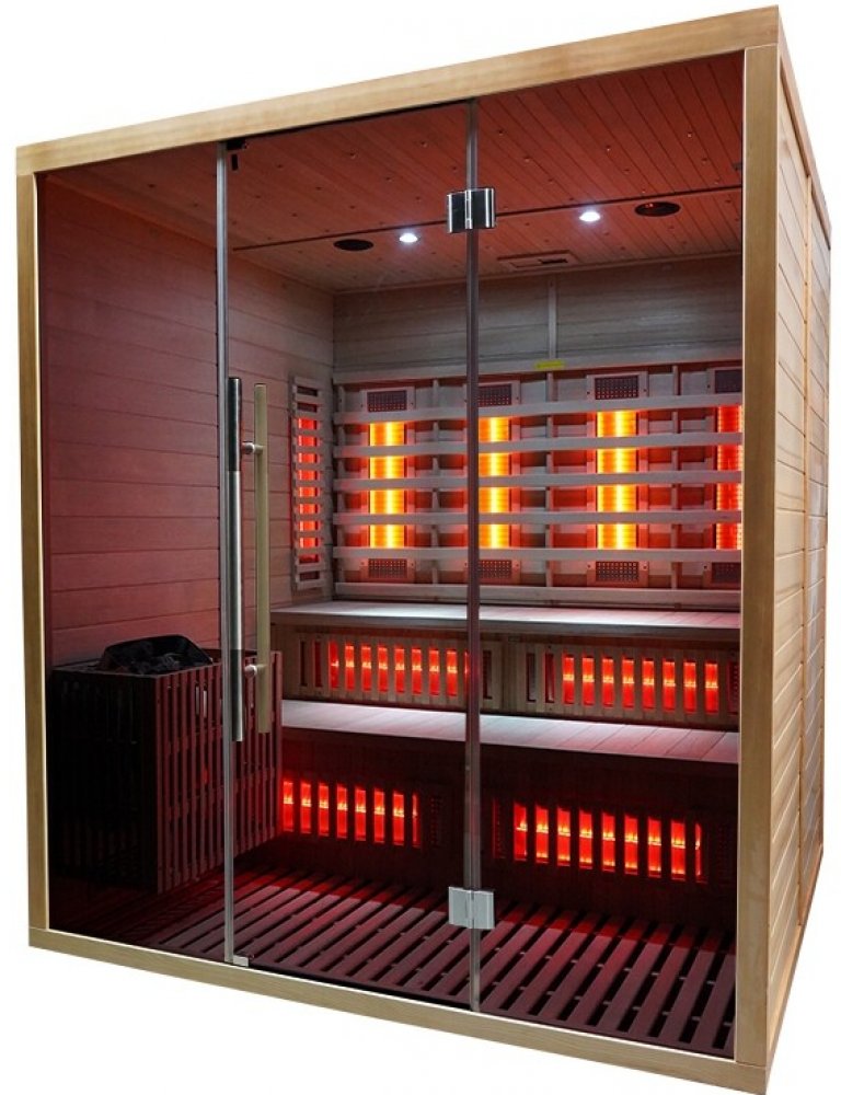 Jste příznivcem saunování ve všech podobách? Nebo se naopak v rodině nemůžete shodnout, zda máte raději finskou saunu, či infrasaunu? Pořiďte si kombinovanou saunu Marimex UNITE XXL a mějte přímo doma obojí v jednom! Na své si tak přijdou milovníci hutného horka a páry finské sauny i osoby, které ocení spíše nižší teploty a hloubkové prohřá tí pomocí infračerveného záření. Kombinovaná sauna Marime...